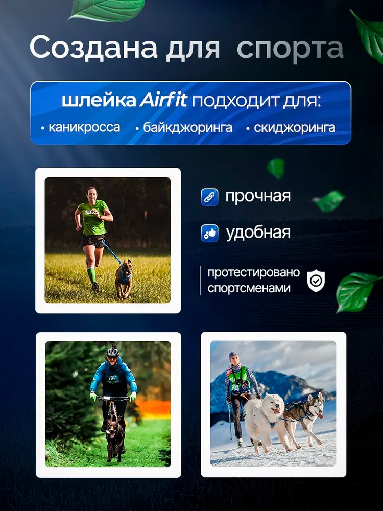 Добро пожаловать в мир приключений и спорта вместе с ездовой шлейкой AirFit для собак! Эта шлейка - идеальное решение для всех любителей активного времяпрепровождения вместе с пушистым другом.Преимущества ездового спорта в шлейке AirFit:1️⃣ Совместные приключения: Шлейка AirFit позволяет вам и вашей собаке исследовать новые места и принимать участие в тренировках или соревнованиях по ездовому спорту. Она обеспечивает идеальную посадку, позволяя вашей собаке свободно двигаться и наслаждаться приключениями вместе с вами.2️⃣ Комфорт и безопасность: Благодаря мягкой подкладке и идеальному лекалу, шлейка AirFit обеспечивает комфорт и правильно распределяет нагрузку на тело вашей собаки во время спортивных занятий. Она также обеспечивает безопасность, предотвращая возможные травмы и обеспечивая полный контроль над движениями вашего питомца.3️⃣ Прочность и надежность: Шлейка AirFit изготовлена из высококачественных материалов, которые обеспечивают прочность и долговечность даже при интенсивных тренировках. Она прослужит вам долго и не подведет в самый ответственный момент.Уход за шлейкой AirFit:Ухаживать за шлейкой AirFit очень просто! Просто закиньте её в стиральную машинку на деликатный режим, 30-40°С. Для продолжения срока службы изделия, дополнительно рекомендуется стирать в мешке для стирки в стиральных машинах. После промывания рекомендуется хорошо просушить шлейку перед следующим использованием. Это позволит сохранить ее качество и внешний вид на протяжении долгого времени.Не упускайте возможность вместе с вашей собакой погрузиться в мир спортивных приключений! Ваша собака будет вам безмерно благодарна за этот стильный и функциональный аксессуар!