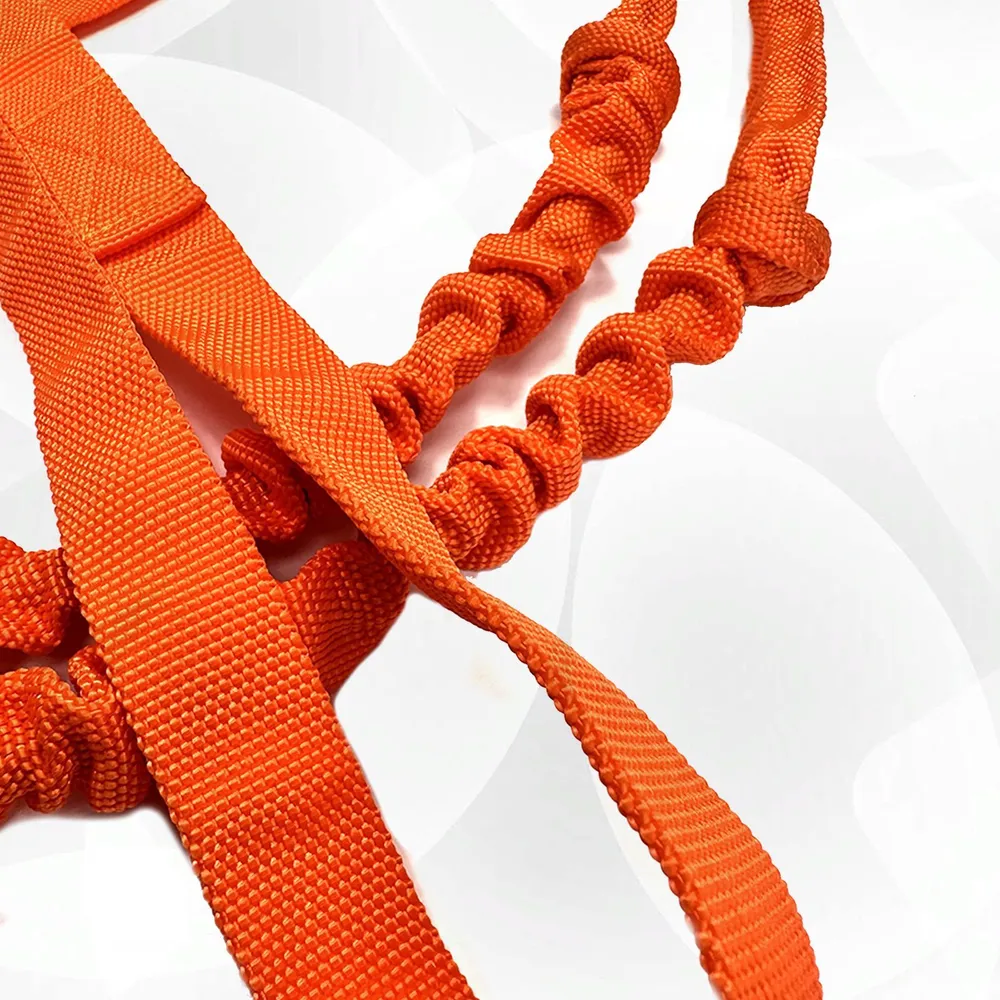 Специальный поводок для собак с амортизатором, который используется для занятий скиджорингом, байкджорингом, догтреккингом, каникроссом.Можно использовать для прогулок, для бега с собакой, катания на лыжах, езды на велосипеде.В конструкции потяга предусмотрены амортизирующие вставки на каждую собаку, которые сводят к минимуму риск получения травмы, которые могут происходить из-за рывков животного.Ширина стропы 25 мм