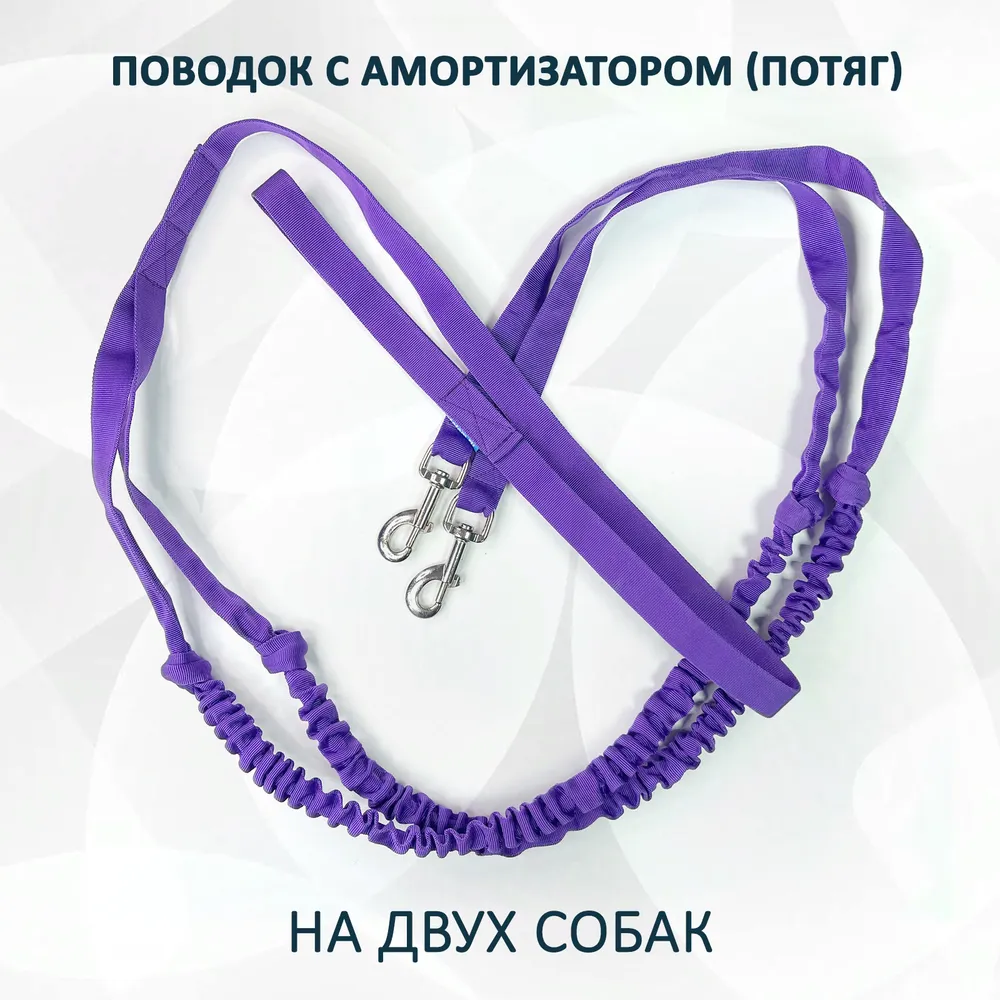 Длина указана в растянутом состоянии.В комплекте идет шейник – один из элементов упряжи для собак для занятий ездовым спортом. Попросту говоря, короткий тросик.И служит он для попарного соединения собак в упряжке и прикрепления их к потягу так, чтобы при движении собаки бежали рядом и не путались в упряжи.Шейник крепится к ошейнику собаки и используется, чтобы держать собак, работающих в тандеме.Потяг предназначен для средних и крупных пород собак, таких, как акита, алабай, маламут, бульдог, пойнтер, сеттер, дог, борзая, овчарка, боксер, выжла, веймаранер, далматин, доберман, лайка, ретривер, кадебо, курцхаар, лабрадор, леонбергер, пудель, ризеншнауцер, риджбек, ротвейлер, аусси, спаниель, терьер, басенджи, питбуль, сиба, хаски, самоед, шарпей, бигль, джек рассел терьер, сеттер, овчарка, боксер, выжла, веймаранер, далматин, лабрадор, пудель, аусси, спаниель, терьер, хаски, шарпей, лайка, мопс, шпиц и др.В списке перечислены лишь некоторые популярные породы.Поводок. Потяг. Поводок для собак. Потяг для собак. Поводок с амортизатором. Потяг с амортизатором. Потяг для бега с собакой. Потяг для скиджоринга. Потяг для байкджоринга. Потяг для догтреккинга. Потяг для каникросса. Поводок для бега с собакой. Поводок для скиджоринга. Поводок для догтреккинга. Поводок для каникросса. Амортизирующий поводок. Амортизирующий потяг для собак. Поводок на двух собак. Потяг на двух собак. На двух собак. Поводок для саней. Потяг для упряжки.
