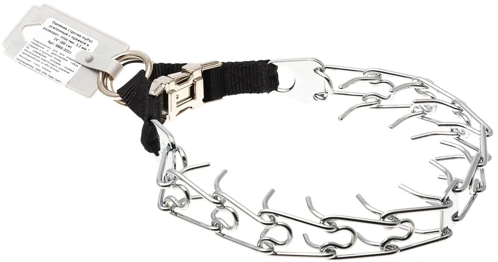 Предназначен для дрессировки собак средних и крупных пород. Размер ошейника можно изменять за счет съемных звеньев. Закругленные зубья звеньев снижают риск повреждения кожи и шерсти собаки. Ошейник для собак – незаменимый аксессуар, который обеспечивает комфорт и безопасность питомца. Он подходит для различных пород, включая крупные и средние. Строгий ошейник становится эффективным инструментом в обучении и контроле поведения четвероногих друзей. Цепь для собак служит надёжным дополнением, позволяя избежать неожиданных ситуаций на прогулке. Ошейники с шипами имеют эстетический вид и могут использоваться как в тренировках, так и в повседневной жизни. Амуниция для собак включает различные виды товаров для животных, которые подстраиваются под особенности характеристик грациозных питомцев. Удавка используется в тех случаях, когда требуется дополнительный контроль во время выгула. Этот аксессуар обеспечит стильный вид вашему питомцу и придаст уверенности хозяину. Ошейники для крупных собак продуманы так, чтобы выдерживать нагрузку и обеспечивать долговечность использования.Ошейник для собак товары для животных предназначен для коррекции поведения. Металлический ошейник цепочка для собак выдерживает большие нагрузки. Строгий ошейник для крупных собак обработан антикоррозийным покрытием. Парфорс является самым востребованным элементом собачьей экипировки. Ошейник строгий учит питомца, быстрее понимать команды. Данная амуниция для собак, ошейник для собаки позволяет корректировать поведение вашего питомца. Не подойдет как ошейник для блох, как ошейник от клещей!!! Наш ошейник для крупных собак и нет только, благодаря съемным звеньям он также подойдет как ошейник для собак средних пород. Строгач для собак станет отличным помощником для прогулок с вашим энергичным питомцем. Наши ошейники подойдут как ошейник для дрессировки собак. Строгач для собак с направленными внутрь шипами. Категорически запрещено использовать его в течение долгого времени. Для того, чтобы подобрать подходящий размер, необходимо знать объем шеи. Для измерения используют сантиметровую ленту. Во время процедуры питомец должен стоять или сидеть неподвижно. Амуниция для прогулки и дрессировки. Строгач для собак применяется кратковременно при обучении новой команде или как ошейник антилай для собаки. Не рассчитан для постоянной носки!