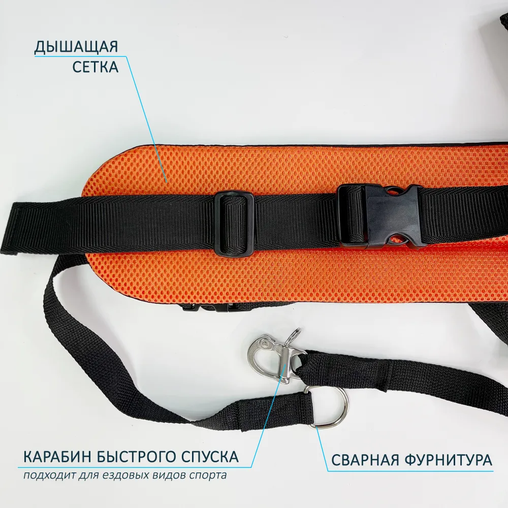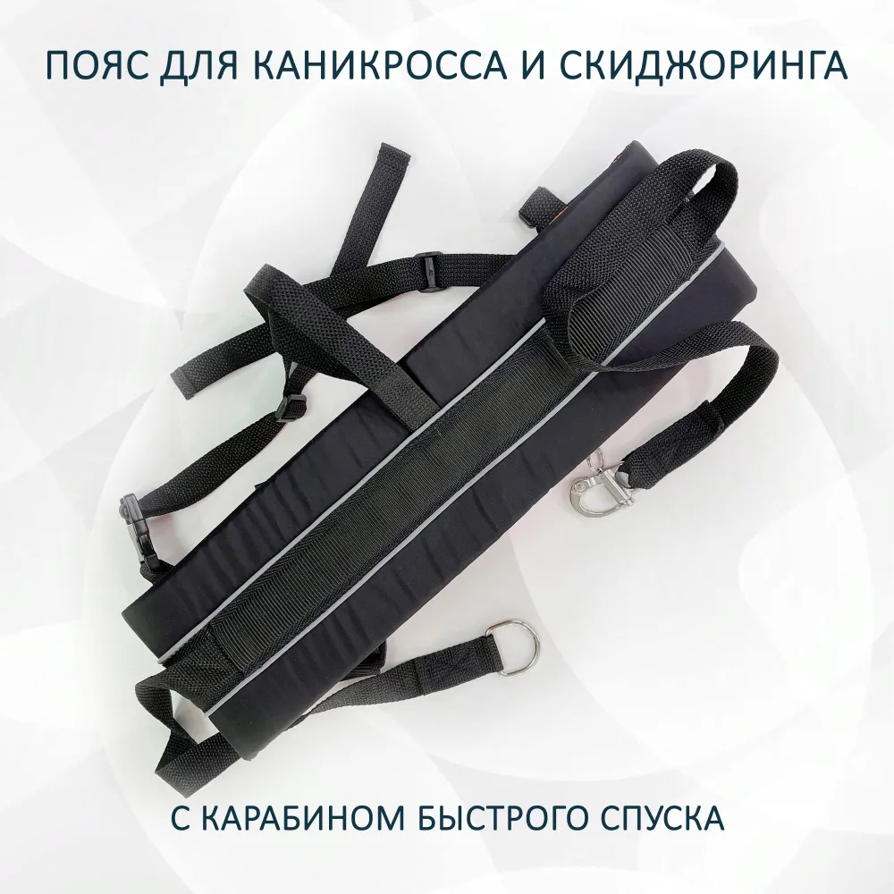 Пояс для прогулок и бега с собакой, каникросса и скиджоринга, освобождает руки от поводка.Широкий уплотненный пояс позволяет равномерно распределять давление по всей спине. Широкие лямки с замком фастекс настраиваются по размеру и фиксируют пояс спереди.Карабин быстрого спуска гарантирует безопасность даже начинающему бегуну или лыжнику. В случае необходимости можно моментально отстегнутся от собаки, дернув за шнурок на карабине.Обвязка вокруг ног не позволит поясу подниматься выше места посадки.Световозвращающие элементы обеспечат безопасность во время тренировок и соревнований в вечернее время.Размер пояса регулируется на бёдрах от 80 до 130 см.Пояс соответствует правилам ездового спорта!