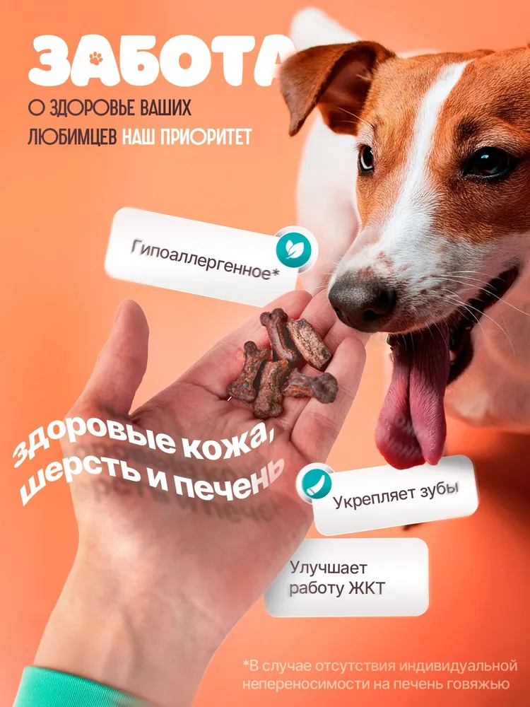 Мясное печенье для собак «Натуральные лакомства для собак» из говяжьей печени создано для того, чтобы приносить пользу вашему пушистому любимицу.Покупка нашего лакомства для собак - это проявление заботы о здоровье вашего питомца.Лакомство для собак
