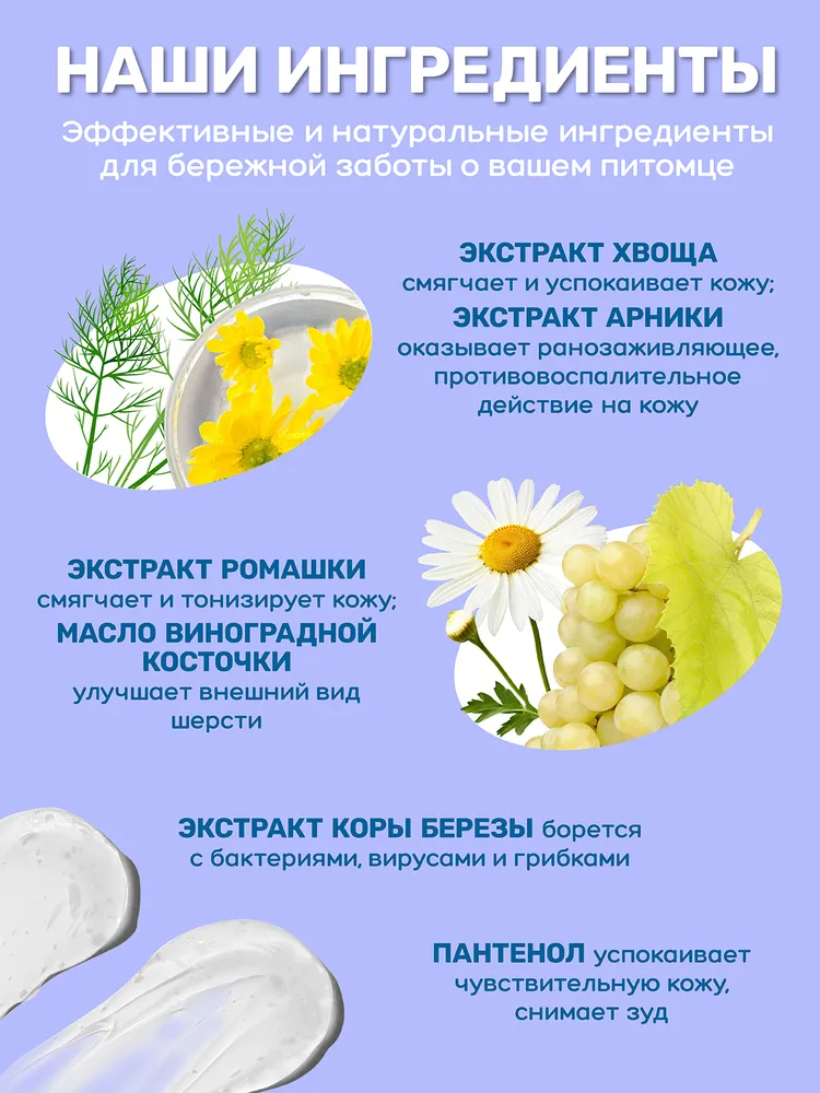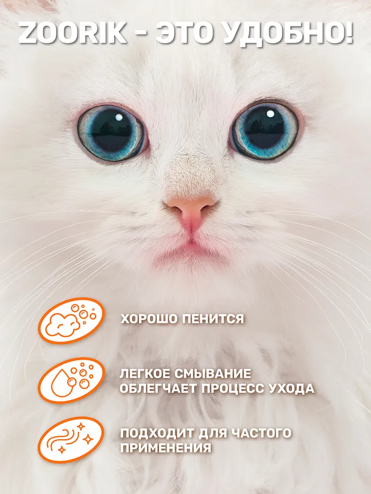 Гипоаллергенный шампунь ZOORIK разработан специально для бережного ухода за шерстью и кожей котят и щенков с 3х месяцев. Его мягкая формула идеально подходит для первых водных процедур, не вызывая раздражений и дискомфорта.Пантенол эффективно увлажняет, снимает зуд, способствует быстрому восстановлению кожи после микроповреждений. Натуральные экстракты ромашки, арники и берёзы обладают выраженным антисептическим, дезодорирующим и успокаивающим действием — они устраняют неприятный запах, снимают воспаления и улучшают общее состояние кожи.Масло виноградной косточки насыщает шерсть полезными элементами, придавая ей эластичность, блеск и мягкость. Экстракт хвоща укрепляет волоски, делая их более плотными и устойчивыми к ломкости.После использования шерсть становится гладкой, послушной и легко расчёсывается. Приятный аромат и ощущение чистоты надолго сохраняются, превращая купание в комфортный ритуал. Идеальный выбор для заботливых владельцев, которым важна не только гигиена, но и здоровье питомца с первых месяцев жизни.СПОСОБ ПРИМЕНЕНИЯ: обильно смочить шерсть теплой водой. Развести шампунь с теплой водой в пропорции 1/3, с помощью губки равномерно нанести на влажную шерсть, слегка втирая до образования пены. Тщательно смыть теплой проточной водой. Высушите питомца полотенцем и расчешите. После шампуня рекомендуем наносить кондиционер. А для легкого расчесывания спрей от колтунов. Сделайте выбор в пользу профессионального ухода за своими питомцами! Забота легче, объятия чаще!E-COSMETIC – официальный поставщик ZOORIK.