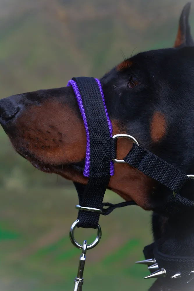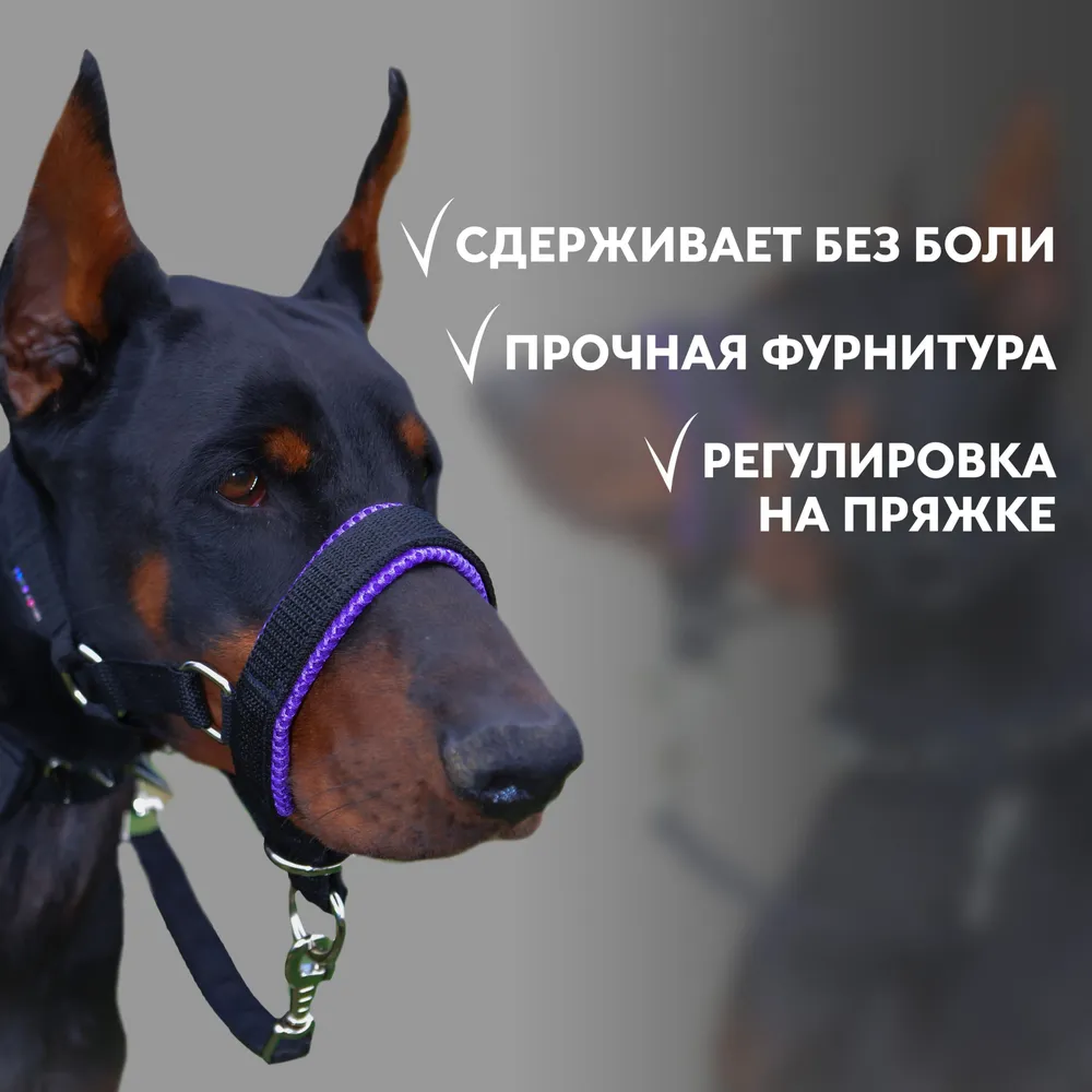 ОПРЕДЕЛЕННО ЭТО ЛУЧШИЙ ВАРИАНТ ДЛЯ ВАШЕЙ СОБАЧКИ!!!Недоуздок(халти)Tesla.collar на металлической пряжке.Изготовлен из прочных, качественных материалов: Внутренняя подкладочная ткань - неопрен.Основной материал - ременная стропа.Сварные кольца, металлическая пряжка.Цвет чёрный с фиолетовым подкладом.Ширина стропы 20 мм.