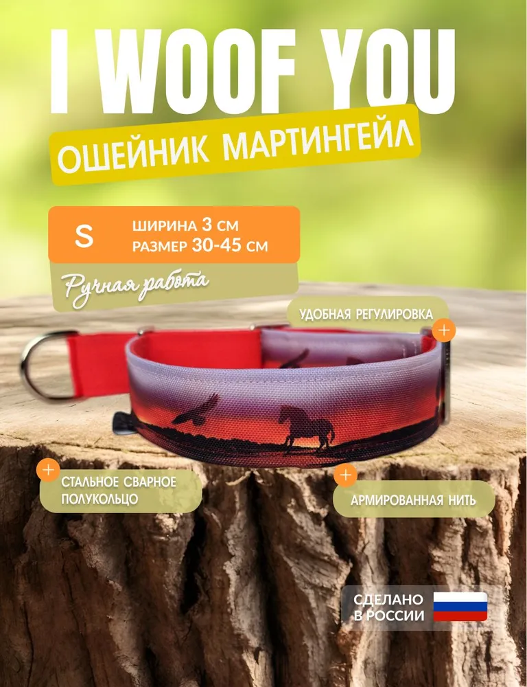 Ошейник для собак I WOOF YOU с принтом "Дикие сердцем" — это удобный, красивый и стильный аксессуар для вашего питомца.Дизайнерский ошейник выполнен в красном цвете с эксклюзивным принтом.Ошейник шириной 30 мм идеально подходит для щенков крупных и средних собак, а также для собак средних пород.Ошейник выполнен из качественных материалов — нейлона и оксфорда, что обеспечивает его прочность и долговечность. Ошейник мягко облегает шею собаки, не вызывая дискомфорта.Особенность ошейника — его уникальная конструкция — мартингейл (полуудавка). Такой корректирующий ошейник для собак помогает контролировать поведение питомца, предотвращая побег, но при этом остается безопасным и удобным. Это делает его отличным выбором в качестве ошейника для дрессировки собак и для коррекции поведения.Благодаря влагозащитному слою, ошейник устойчив к воздействию влаги и подходит для использования в любую погоду. Также он легко моется. Вы можете стирать его в стиральной машине при 30-40 C.Этот крепкий ошейник подойдет не только для повседневных прогулок, но и как тренировочный ошейник для корректировки поведения. Он упакован в картонную крафтовую коробку, что делает его отличным подарком.Выбирая ошейники ручной работы для собак от I WOOF YOU, вы получаете надежный, мягкий ошейник для собак, который обеспечит безопасность, комфорт и стиль вашему четвероногому другу.Ошейник размера S 30-45 см подойдет для собак следующих пород:австралийский келпиамериканская эскимосская собакаанглийский кокер-спаниельбасенджибигльбордер-колливельш коргивельш-корги кардиганвольфшпицгрейхаунддалматинецирландский водяной спаниельирландский терьеркламбер-спаниелькокер-спаниельксолоитцкуинтлиманчестер терьермиттельшнауцермопспарсон рассел терьерпудельсуссекс-спаниельтибетский терьерфранцузский бульдогцвергшнауцерчешский терьершотландский терьер