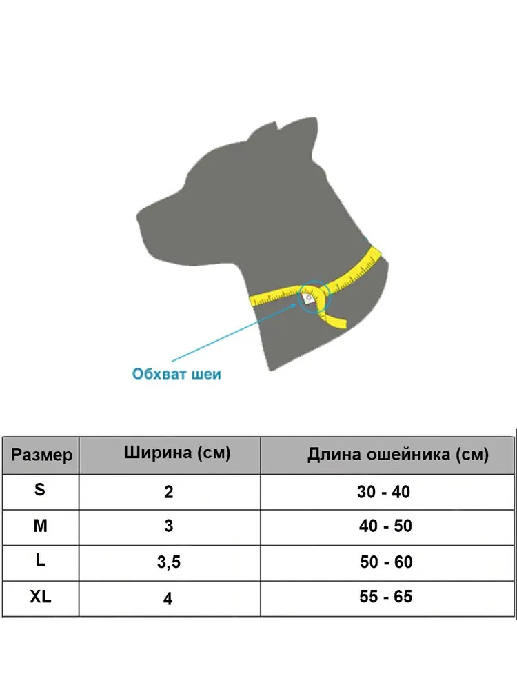 Ошейник-удавка для собак всех пород предназначен для дрессировки, а также подходит для повседневных прогулок. Яркий и стильный дизайн позволяет использовать его при участии в выставках и фотосессиях. Отлично подгоняется по размеру. Поводок крепится к кольцу из нержавеющей стали. Предназначен для комфортного, повседневного и безопасного выгуливания собаки, ошейник может быть использован во время прогулок, тренировок и дрессировок. Ошейник выпускается в четырех размерах : S, M, L, XL. Для точного выбора размера рекомендуем воспользоваться размерной таблицей на втором фото. Если нет возможности измерить обхват шеи питомца - ориентируйтесь на отзывы наших покупателей. Ошейник очень прост в уходе - достаточно протереть его влажной тряпкой после прогулки. Сушить на открытом воздухе без использования батареи или полотенцесушителя. Ошейник выполнен в разнообразных цветовых вариантах, поэтому Вы сможете подобрать подходящую по эстетике модель. Поводок в комплект не входит. Mirestra - лидирующий бренд товаров для Ваших питомцев. В нашем магазине Вы сможете подобрать зоотовары на любой вкус. Мы предоставляем нашим клиентам только самую лучшую амуницию для прогулки и дрессировки (шлейки, ошейники, поводки), игрушки для собак, кошек, котов, щенков и птиц. Подходит для владельцев популярных пород собак: лабрадор-ретривер, золотистый ретривер, сибирский хаски, джек рассел терьер, той терьер, немецкая овчарка, алабай, французский бульдог, мопс, такса, доберман, пудель, ротвейлер, бигль, корги, самоед, цвергшнауцер, сенбернар, эрдельтерьер, бультерьер, шпиц, питбуль, стаффорд и многих других. Качественный, удобный и безопасный ошейник - настоящий подарок, который Вы можете сделать своему четвероногому другу.