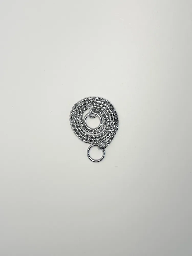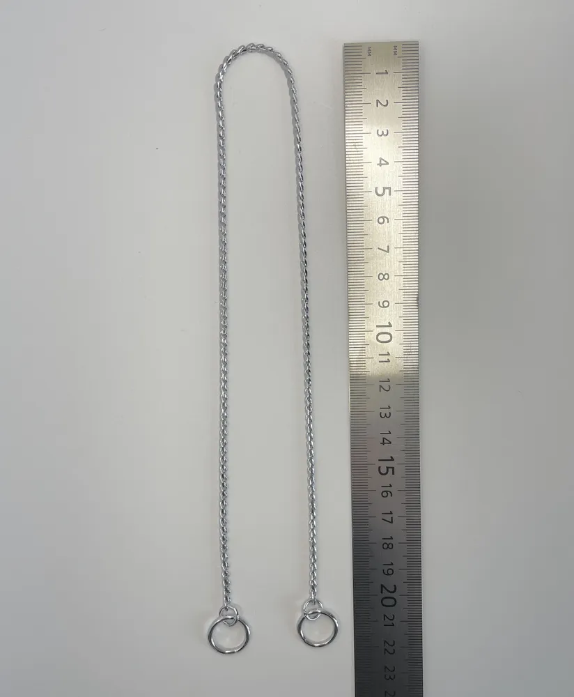 Металлическая шоу цепочка-кобра для собак маленького размера. Рассчитана на очень маленьких собак , весом не более 10 кг.В профиле нашего магазина Вы сможете найти данную кобру в других размерах.Рывковая цепочка ( ринговка) в плетении «кобра» выполнена из латуни, предназначена для дрессировки и показа собаки в выставочном ринге. Толщина 2.5 мм. Длина вместе с кольцами 46 см. Диаметр колец 1,5 см.Выставочная рывковая цепочка-кобра идеальна как для короткошерстных, так и для длинношерстных пород собак. Одна из самых популярных моделей шоу-цепочек среди профессиональных хендлеров. Не окрашивает и не закусывает волос. Легко скользит по шерсти благодаря хромированному покрытию. Обеспечивает идеальное послушание и отдачу в работе с собакой в ринге.Внимание! Для того, чтобы сделать петлю из цепочки, необходимо продеть основание цепочки в прилегающее кольцо, а не "кольцо в кольцо", диаметр колец одинаковый. Если у цепочки появились загибы звена, необходимо встряхнуть ее и немного растянуть, звенья вернутся в исходное положение.!!!! Просим учитывать , что цепочка миниатюрная , невесомая и очень тонкая , рассчитана на очень маленьких собак. Даже если у Вас щенок или юниор крупных пород , его сила рывка высокая, данная цепочка не подходит для использования на крупных породах всех возрастов !!!!