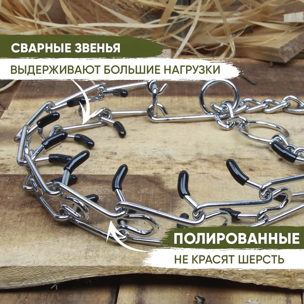 Профессиональный строгий ошейник с удавкой, разнонаправленные зубья. Предназначен для собак средних и крупных пород. Строгий ошейник для воспитания особо активных и сильных собак, а также сторожевых и бойцовских пород.При рывке собаки ошейник сокращается в диаметре, поднимаются специально отогнутые проволочные зубья, приносящие собаке неприятные ощущения. Питомец, каким бы активным он не был, быстро понимает, что дергать поводок нельзя. Так воспитывается дисциплина и подчинение хозяину.Можно снять несколько звеньев, уменьшив таким образом длину ошейника. Материал: сталь. Предназначен для дрессировки собак, так же идеально подойдет для повседневного использования.Стальной материал ошейника обеспечивает надежность и прочность даже при интенсивном использовании. Качественная конструкция и прочные заклепки гарантируют, что ошейник прослужит вам долгое время.Ширина 20мм, вес 100г, толщина 2мм, подойдет для собак с обхватом шеи 33-47 см.ВАЖНО! Обхват ошейника замерен в распущенном состоянии удавки. Удавка уменьшает обхват ошейника примерно на 20%.