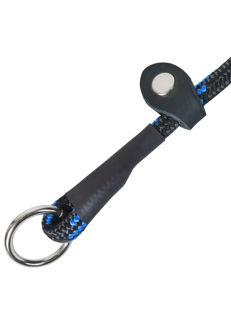 Ошейник для собак сделан из высококачественного полипропиленового шнура. Диаметр шнура – 8 мм, длина – 50 см. Регулировка диаметра осуществляется в пределах 40 см, так что Вы точно не ошибетесь с размером.Ошейник, который также называется «удавка» или «петля» идеально подходит для того, чтобы обеспечить надлежащий контроль за Вашим любимцем во время тренировочного процесса. Также данный ошейник можно использовать во время прогулок или похода к ветеринару.Ошейник можно использовать в двух режимах. Первый подходит для моментального затягивания петли, второй – для контроля в режиме «лайт». Это возможно благодаря специальному ограничителю, просто установите кольцо перед или за ним.Сочетание синего и черного цвета выглядит очень изыскано. Особенностями полипропилена, из которого сделан ошейник, является высокая прочность (выдерживает нагрузку 580 кг), высокая гидрофобность (не мокнет и не тонет), морозоустойчивость, гипоаллергенность, а также высокие пылеотталкивающие показатели.Приобретая ошейник CHOKERZ, Вы можете быть уверены в его надежности и качестве используемых первоклассных материалов.Крафтовая экологичная упаковка, потому что мы вместе с Вами заботимся об окружающей среде.