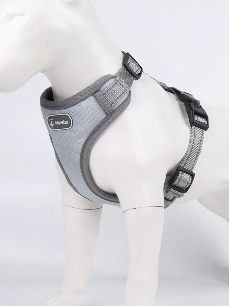 Шлейка прогулочная сделана из высокотехнологичных материалов с мягкой подкладкой из неопрена, имеет эргономичную форму, которая переносит рывковое усилие Вашей собаки на грудь, не задействуя шею. Шлейка удобная, дышащая, анатомически правильная, обеспечивает максимальный комфорт питомцу, она легко расстегивается и застегивается благодаря удобным и простым в использовании застежкам, позволяя быстро и удобно снять шлейку с питомца. Отлично подгоняется по размеру. Застежка-фастекс обладает блокировкой от случайного открытия, не позволяя питомцу сорваться во время прогулки. Поводок крепится к кольцу из нержавеющей стали на спине. Предназначена для комфортного, повседневного и безопасного выгуливания собаки, она может быть использована во время прогулок и тренировок как альтернатива ошейнику, во время дрессировок, а также для безопасной перевозки питомца в автомобиле. Содержит светоотражающие элементы для безопасных прогулок в вечернее и ночное время. Подойдет для собак мелких, средних и крупных пород. Шлейка выпускается в четырех размерах : S, M, L, XL. Для точного выбора размера рекомендуем воспользоваться размерной таблицей на втором фото. Если нет возможности измерить обхват груди питомца - ориентируйтесь на отзывы наших покупателей. Шлейка очень проста в уходе - ее можно стирать в машинке без использования отбеливателя. Сушить на открытом воздухе без использования батареи или полотенцесушителя. Шлейка выполнена в разнообразных цветовых вариантах, поэтому Вы сможете подобрать подходящую по эстетике модель. Поводок в комплект не входит. Mirestra - лидирующий бренд товаров для животных. В нашем магазине Вы сможете подобрать зоотовары на любой вкус. Мы предоставляем нашим клиентам только самую лучшую амуницию для прогулки и дрессировки (шлейки, ошейники, поводки), игрушки для собак, кошек, котов, щенков и птиц. Подходит для владельцев популярных пород собак: лабрадор-ретривер, золотистый ретривер, сибирский хаски, джек рассел терьер, той терьер, немецкая овчарка, алабай, французский бульдог, мопс, такса, доберман, пудель, ротвейлер, бигль, корги, самоед, цвергшнауцер, сенбернар, эрдельтерьер, бультерьер, стаффорд, шпиц и многих других. Качественная, удобная и безопасная шлейка - настоящий подарок, который Вы можете сделать своему четвероногому другу.