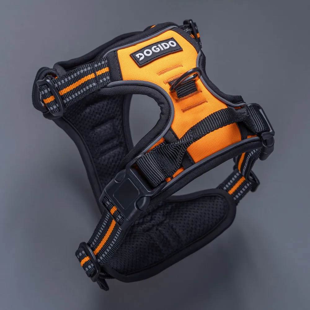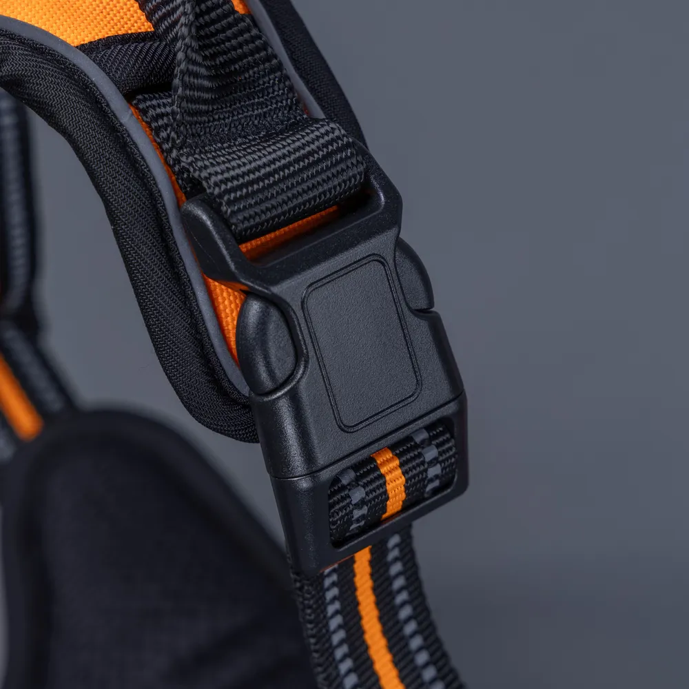 Шлейка для собак DOGIDO - идеальный выбор для владельцев мелких и средних пород. Этот аксессуар представляет собой надежную альтернативу обычным ошейникам, обеспечивая равномерное распределение нагрузки на тело животного при натяжении или рывке поводка. Анатомическая конструкция с двойной фиксацией предотвращает дискомфорт и травмы, которые могут возникнуть при использовании классических ошейников. Шлейка изготовлена из высококачественных материалов: Оксфорд, нейлон, сталь, сетка и пластик, что делает ее прочной и долговечной. Цвет шлейки - яркий оранжевый, что обеспечивает дополнительную видимость вашего питомца.Особенности этой шлейки включают светоотражающие элементы, встроенные в ремни. Эти нити отражают свет от фар автомобилей и других источников света, обеспечивая безопасность вашего питомца во время прогулок в темное время суток. Прочные регулируемые ремни с амортизацией не пережимают собаку даже при сильном натяжении, что делает эту модель подходящей не только для повседневных прогулок, но и для дрессировки. Крепление жилета осуществляется с помощью этих ремней, которые легко регулируются для обеспечения оптимальной посадки. Шлейка оснащена двумя металлическими кольцами для крепления поводка. Одно кольцо расположено на груди, а другое - на спине, что позволяет использовать шлейку для различных пород и размеров собак.Горизонтальная ручка на спине шлейки позволяет легко контролировать собаку, заводить ее в помещение или помогать при посадке в автомобиль. Это особенно удобно при прогулках в людных местах или при необходимости быстрой реакции на поведение собаки. Износостойкая ткань OXFORD 1000 легко очищается и устойчива к различным погодным условиям, что делает шлейку идеальной для использования в любое время года. Основной материал - ткань OXFORD 1000, которая легко очищается и устойчива к износу.Эта шлейка идеально подходит для ежедневных прогулок и тренировок, обеспечивая максимальный комфорт и безопасность для вашего питомца. Выбирайте DOGIDO - качественную шлейку для собак мелких и средних пород, и ваши прогулки станут еще приятнее! Важно отметить, что шлейка разработана с учетом анатомических особенностей собак, что делает ее подходящей для различных пород, таких как французский бульдог, мопс, джек-рассел-терьер, бигль, такса, бостонский терьер, бордертерьер, шипперке, цвергшнауцер, скотч-терьер, ирландский терьер, фокстерьер.Шлейка для собак DOGIDO - это не просто аксессуар, а важный элемент заботы о вашем питомце. При выборе правильного размера необходимо измерить обхват шеи и груди вашего питомца в сантиметрах и выбрать подходящий по таблице размеров. Правильно зафиксированная шлейка не должна быть ни слишком маленькой, ни слишком большой. Между ремнями и телом животного должны свободно проходить два пальца, что обеспечивает комфорт и безопасность во время ношения. Эта шлейка обеспечивает надежную фиксацию, комфорт и безопасность для вашего питомца, делая прогулки и тренировки приятными и безопасными. Подарите вашему питомцу лучший аксессуар для прогулок и наслаждайтесь каждым моментом вместе!