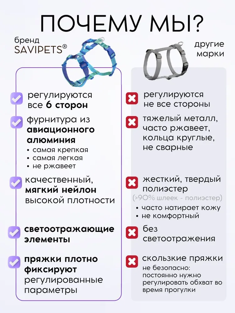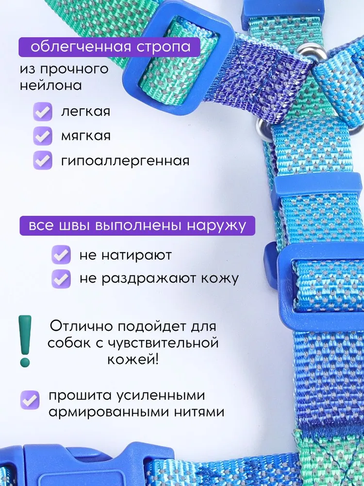Усиленная анатомическая прогулочная шлейка станет надежным выбором для прогулок с собаками средних и крупных пород. Она обеспечивает комфорт даже при длительном использовании благодаря мягким материалам, не натирающим кожу питомца. Регулируемая конструкция позволяет адаптировать изделие под особенности телосложения таких пород, как немецкая овчарка, сиба ину, самоед, алабай или хаски.Модель подходит для активных прогулок с биглями, бордер колли, ретриверами и другими энергичными собаками. Крепкий нейлоновый материал выдерживает нагрузку даже от сильных питомцев, включая доберманов и ротвейлеров. Быстросъемная застежка облегчает процесс надевания и снятия изделия.Шлейка также удобна для более мелких представителей: кавалер кинг, кокер спаниеля или французского бульдога. Ее универсальный дизайн подойдет как дворняжке, так и породистым собакам – от ягдтерьеров до американских стаффордширских терьеров.Дополнительные усиленные элементы конструкции гарантируют надежность при выгулах лайки или басенджи. Эргономичная форма учитывает особенности телосложения пуделей и стаффордов. Изделие помогает равномерно распределить нагрузку на грудную клетку животного без вреда для его здоровья.Шлейка предназначена для владельцев собак любых размеров: от бишонов до крупных амстаффов и стаффордширского терьера. Ее прочность проверена на практике в использовании с большими породами вроде питбулей и лабрадора.Это идеальное решение для повседневных прогулок в парке или лесу с мейн-кунами (в том числе дворнягами). Прочный фиксатор защищает от самопроизвольного расстегивания даже при сильных рывках боксера или корги.Среди других преимуществ модели – возможность использования для тренировок овчарки или борзой. Анатомическая форма обеспечивает удобство спаниелям всех разновидностей, включая бассетхаундов и бигля.