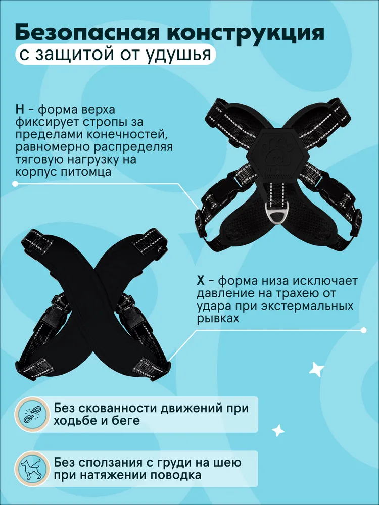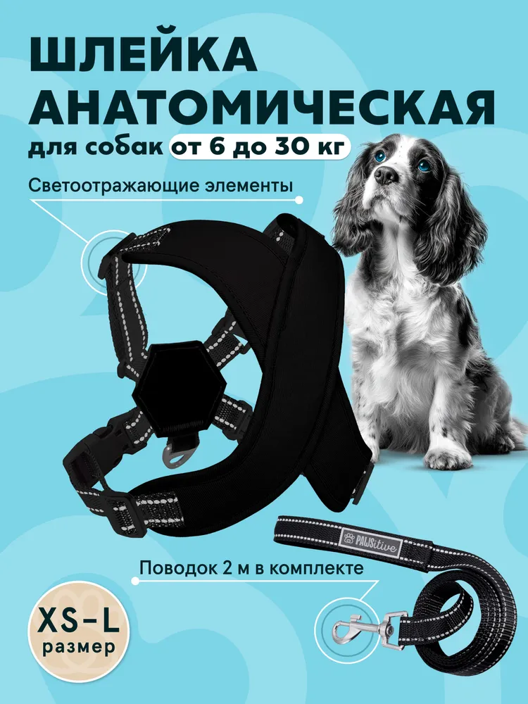 Шлейка PAWSitive / Для собак мелких и средних пород размер L / Анатомическая c поводком 2 м