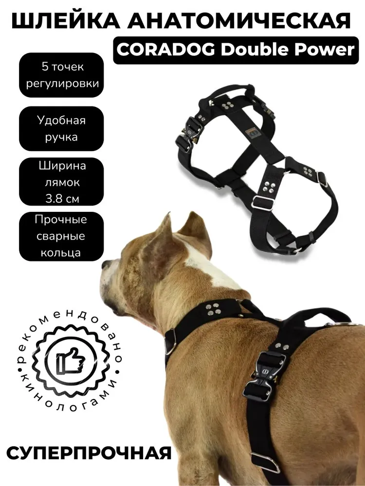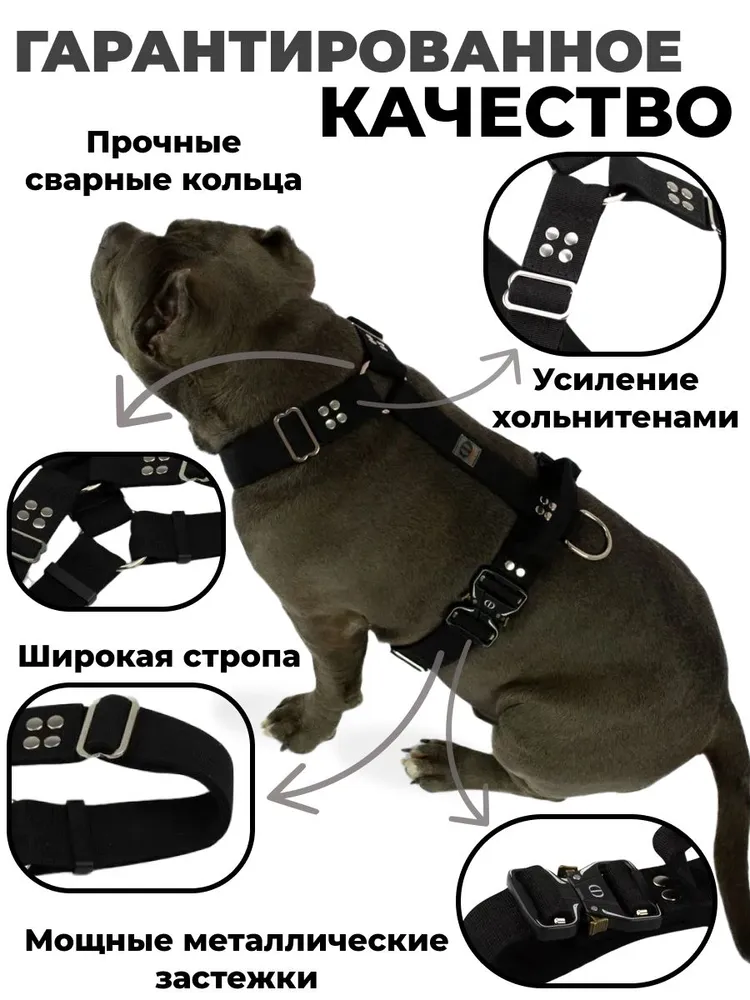Шлейка Double Power, прочная и надёжная, создана специально для экстремально сильных собак, рассчитана на высокие нагрузки. Может использоваться как прогулочная шлейка для средних и крупных собак, для дрессировки, тренировок, для обучения ЗКС.Шлейка имеет правильную анатомическую форму - спереди Y-образную, которая защищает шею собаки от натяжения поводка и не травмирует ее. Широкие лямки распределяют нагрузку на большей площади и не врезаются при сильном натяжении.Лямки шлейки на обхвате груди отходят от плеча, чтобы не натирать подмышки и не мешать во время движения. Удобная ручка позволяет фиксировать и удерживать собаку возле себя.При правильной регулировке шлейки вывернуться из неё невозможно.Шлейка надевается через голову и застегивается по бокам с двух сторон. Это делает процедуру одевания максимально быстрой. Мощные металлические застежки фастекс выдерживают любые нагрузки.Размер М. Обхват ниже шеи 50-76 см. Обхват груди 60-80 см.Размер L. Обхват ниже шеи 60-90 см. Обхват груди 70-100 см