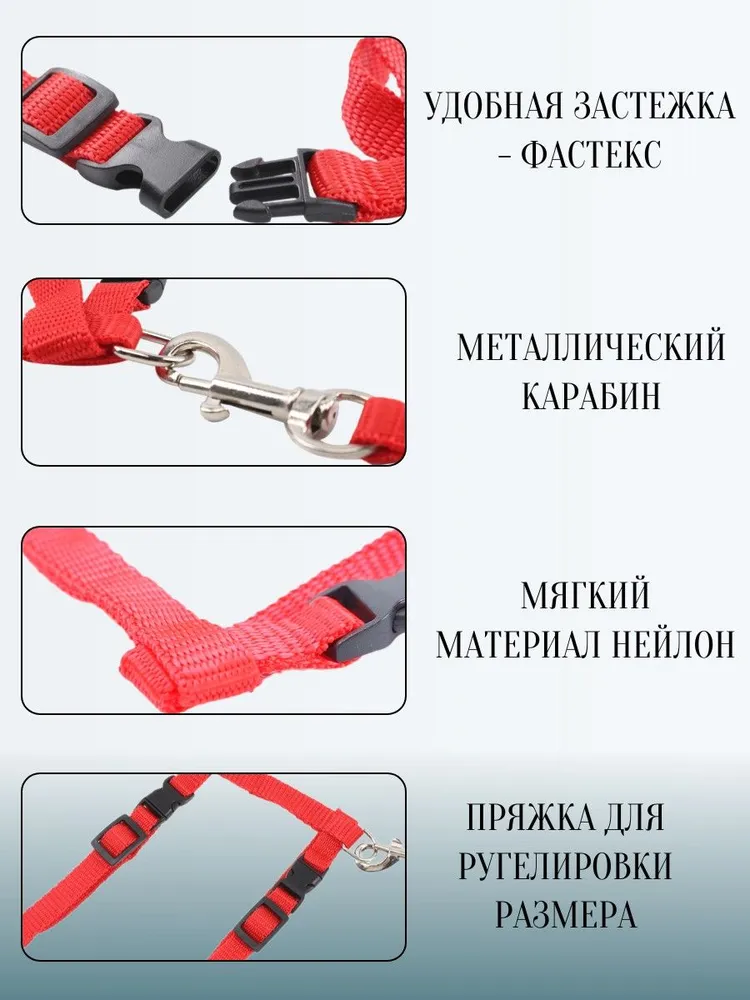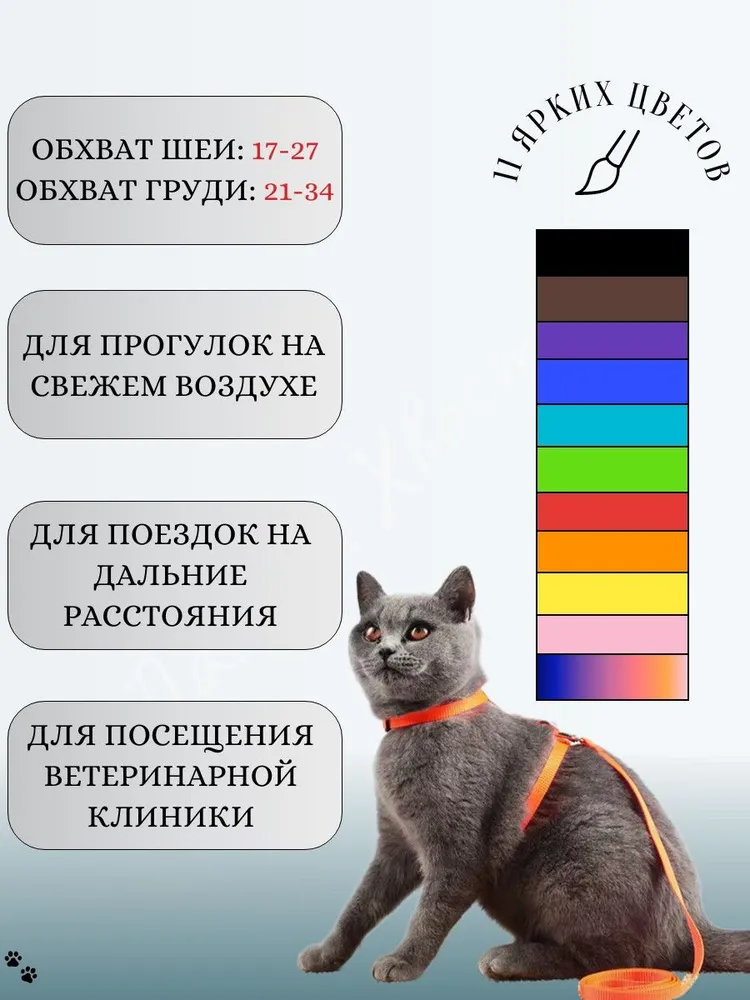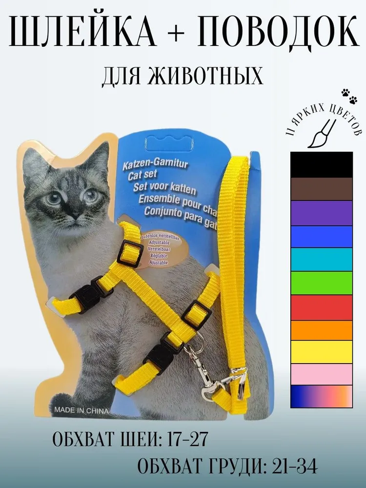 Прогулочная нейлоновая шлейка с поводком, идеально подходящая для кошек, щенков, мелких пород собак и даже кроликов. Этот аксессуар отличная альтернатива ошейнику, станет надежным спутником для прогулок на свежем воздухе, обеспечивая комфорт и безопасность вашему питомцу.Надежная и прочная