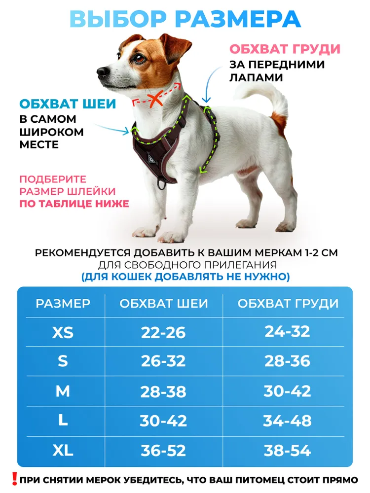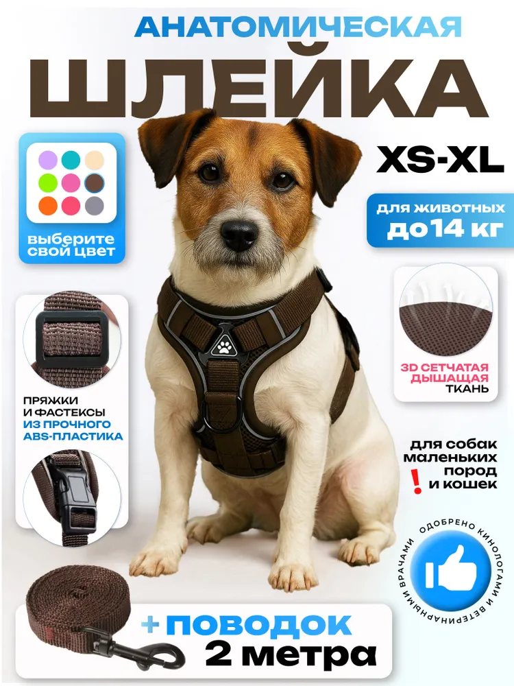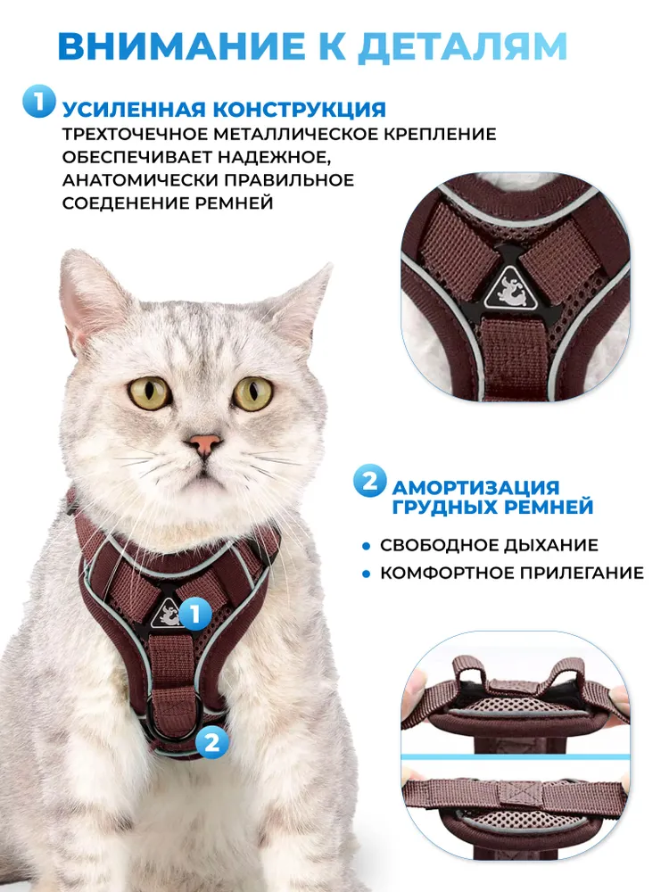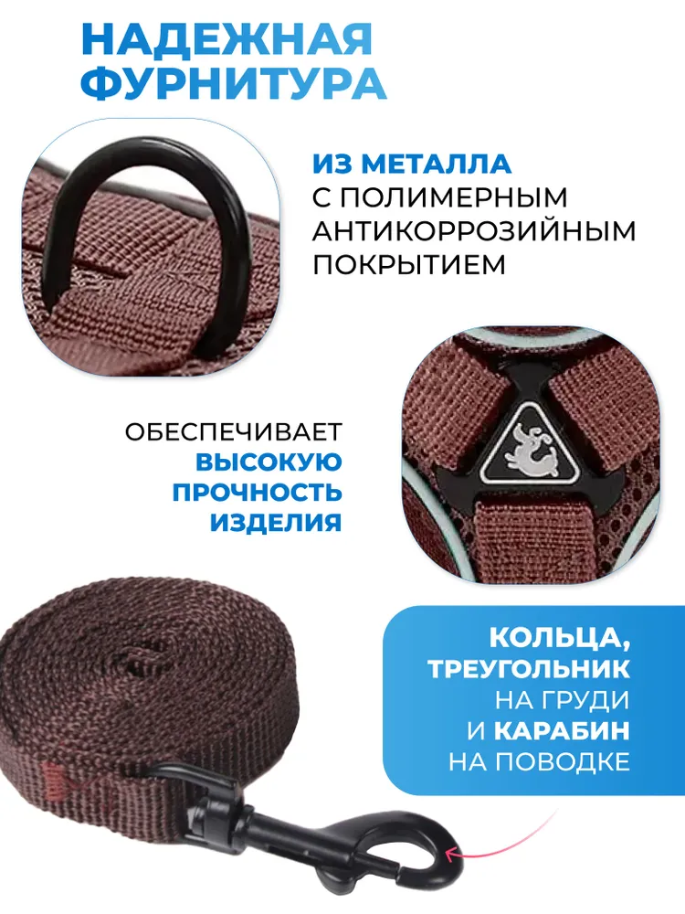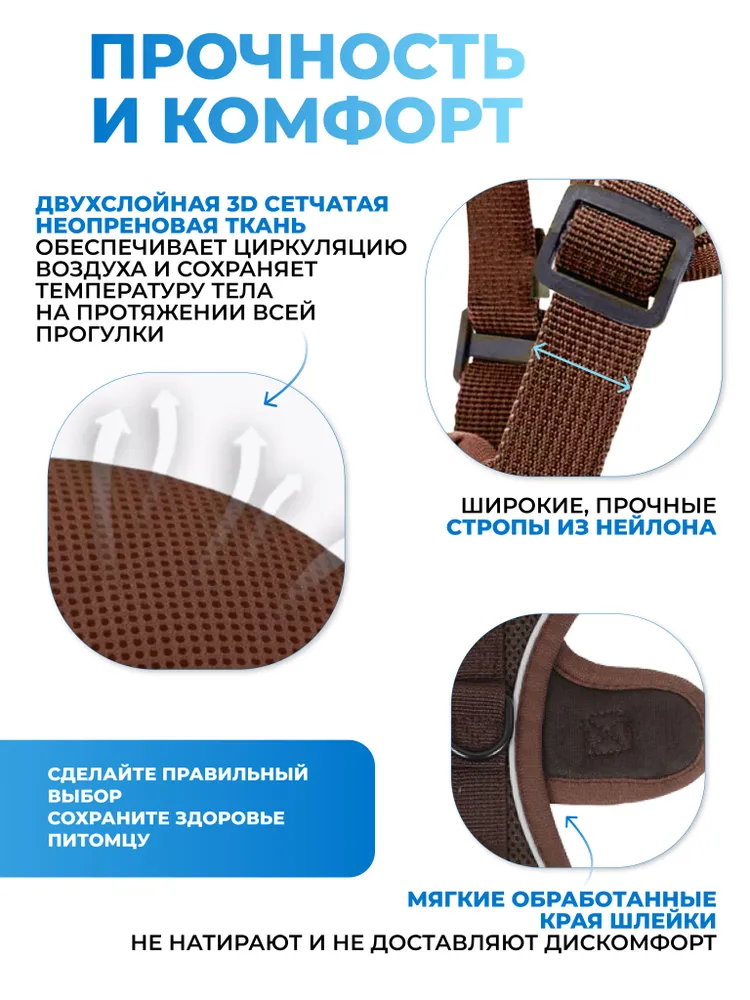 Шлейка анатомическая для собак и кошек регулируемая Wonder Pet / коричневый / размер M