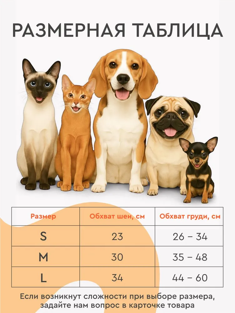 С чего начинается комфорт?С правильного размера! Поэтому очень важно делать замеры вашего любимца и пользоваться нашей размерной таблицей на фото в карточке товара. Подбирать размер по отзывам других покупателей — не лучшая идея, ведь каждый питомец имеет свои параметры и особенности.Не ленись — сделай замеры