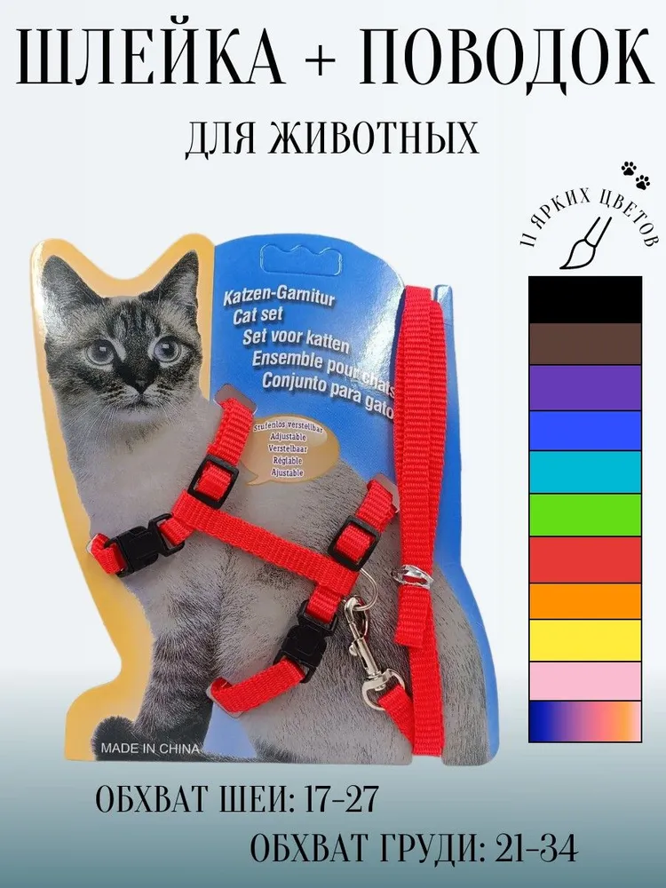 Прогулочная нейлоновая шлейка с поводком, идеально подходящая для кошек, щенков, мелких пород собак и даже кроликов. Этот аксессуар отличная альтернатива ошейнику, станет надежным спутником для прогулок на свежем воздухе, обеспечивая комфорт и безопасность вашему питомцу.Надежная и прочная