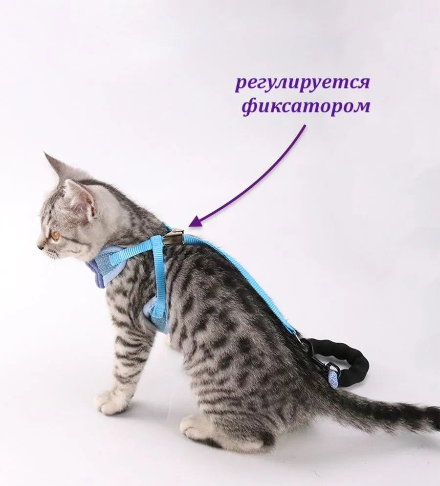 Прогулочная шлейка для животных прекрасно подойдет для кошек, котов и собак мелких пород, а также для щенят и котят. В комплекте данной амуниции для идет регулируемая шлейка, поводок с удобной ручкой 1,5 м. Анатомическая шлея с голубой бабочкой не душит, как ошейники для животных, и создана для безопасной прогулки животных: кота или кошки, котят, маленьких собак типа шпица, мопса, йорка, корги, таксы, щенков, котенка, кролика, чихуахуа. Данный товар для животных подходит для собак мелких и средних пород. Комплект состоит из шлейки-жилетки с регулируемыми ремнями и крепкого поводка с карабином. Эргономичная ручка, перетянутая поролоном, позволит Вам при прогулке свободно и безопасно контролировать движения Вашего животного, без каких-либо натираний. Шлейка дышащая, относится к категории товары для собак, товары для кошек на любой сезон, даже в жаркую погоду. Шлейка-поводок равномерно распределяет нагрузку, не создавая дискомфорта. Для кошек, для собак шлейка является очень удобной амуницией для прогулки. Благодаря приятному голубому цвету, Ваш питомец будет виден издалека, а голубая бабочка придаст ему праздничный вид. Животные будут комфортно чувствовать себя в прогулочной шлейке благодаря регулируемой застежке. Ширина поводка - 1 см. Мин. диаметр (шея) - 20 см (расширяется до нужного размера); мин. диаметр (спина) - 28 см (расширяется до нужного размера). **Вес животного:** от 2.5 до 10 кг.Шлейка для животных прекрасно подходит в качестве амуниции для прогулки и дрессировки. Все для кошек, товарый для собак и кошек Вы сможете найти в магазине зоотоваров Kosho. Будем рады видеть Вас в числе наших клиентов!