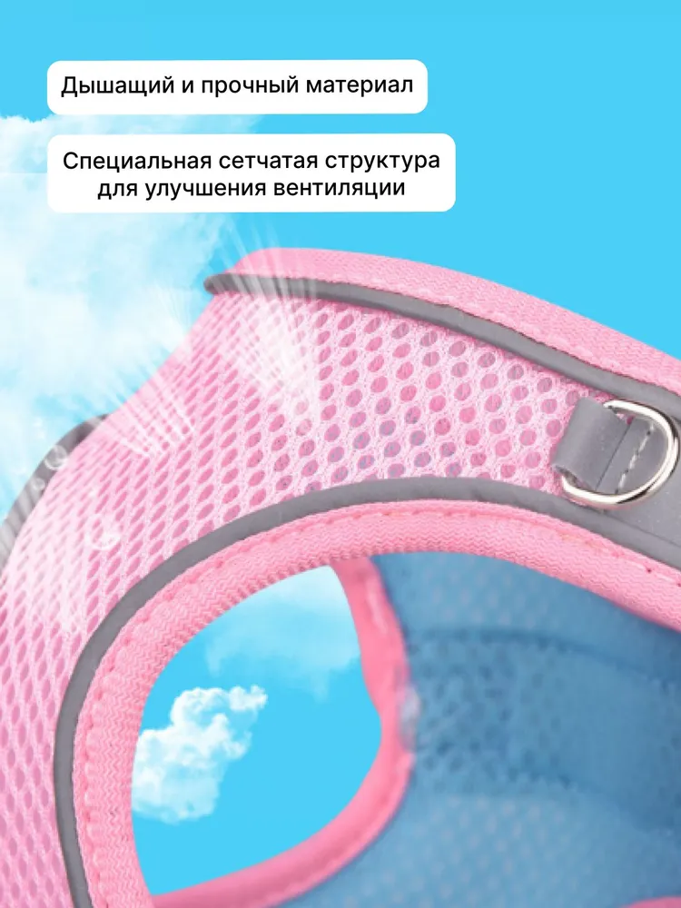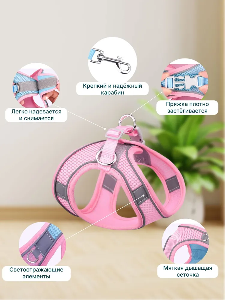 Шлейка для кошек и собак.Шлейка предназначена для безопасного и комфортного выгуливания питомца в любое время суток. Содержит светоотражающие элементы для безопасных прогулок в вечернее время. Изготовлена из дышащего материала, который пропускает воздух, тем самым не создает опрелости и потертости на коже питомца, не доставляет ему никакого дискомфорта.Идеально подходит для маленьких кошек и собак.Размер легко регулируется благодаря надежным застежкам. Поводок 150 см идет в комплекте.Перед использованием убедитесь, что шлейка подобрана по размеру и застёжки надёжно закреплены. Всегда контролируйте питомца во время прогулки.