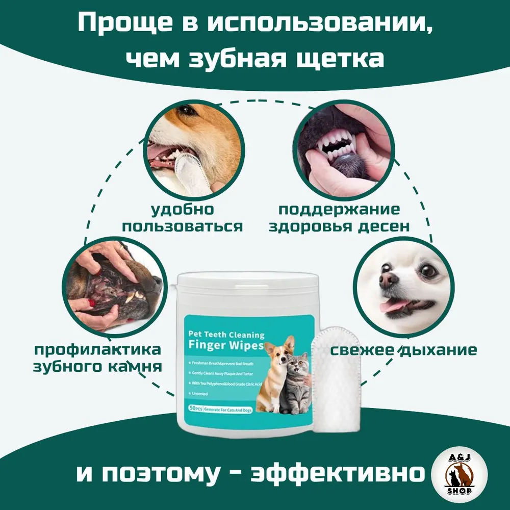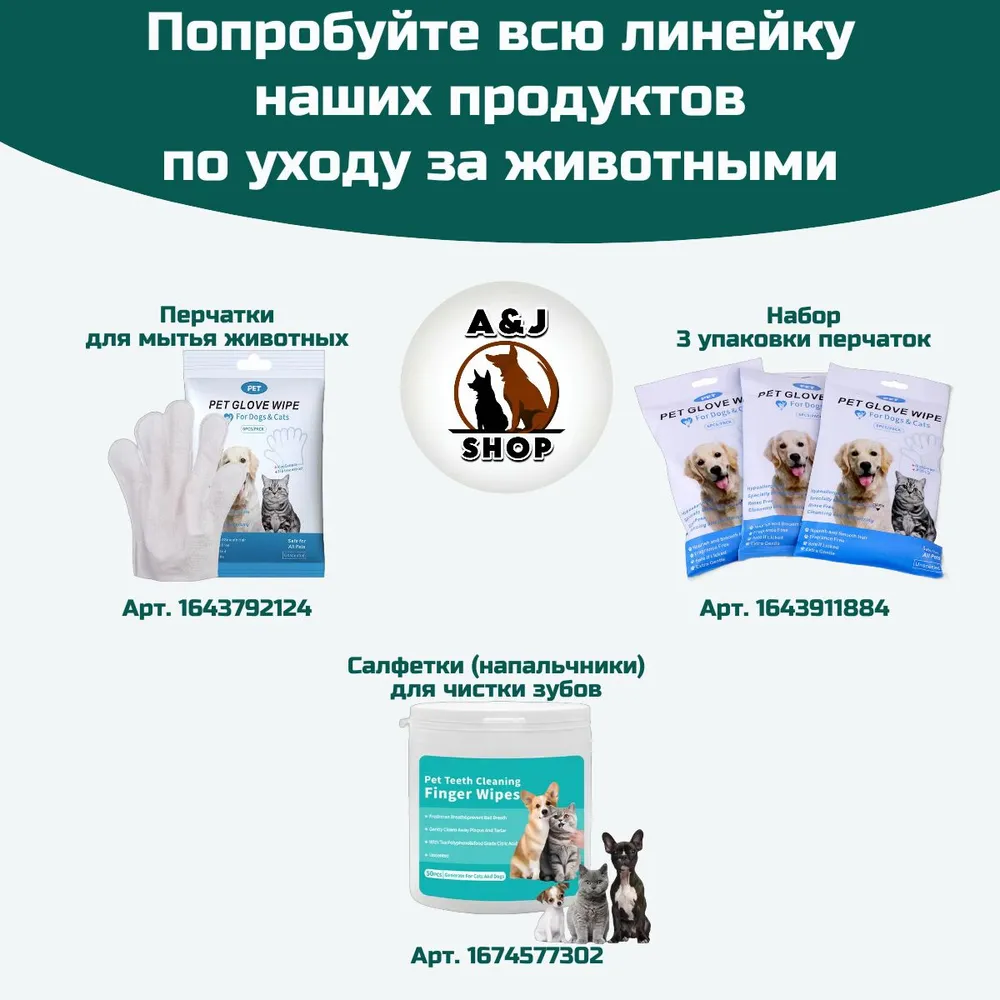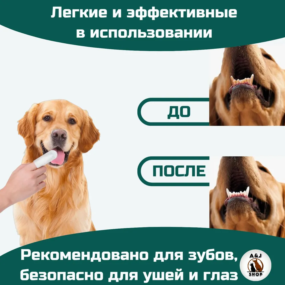 Здоровье зубов вашего питомца (кошки или собаки) играет важнейшую роль.Состояние зубов влияет и на пищеварительную систему, и на организм в целом. Поэтому нужно постоянно следить за ними.Наши салфетки для чистки зубов кошек и собак благодаря их пупырчатой структуре и специальному составу при ежедневном использовании помогут предотвратить образование зубного камня, устранят неприятный запах и убьют бактерии.Удобная форма напальчника делает эту процедуру безболезненной и для Вас, и для Вашего питомца.Помогите своему другу оставаться здоровым.Ваш питомец будет доволен, а Вы — спокойны за его здоровье и благополучие.Допускается использование для ухода за глазами и ушами.