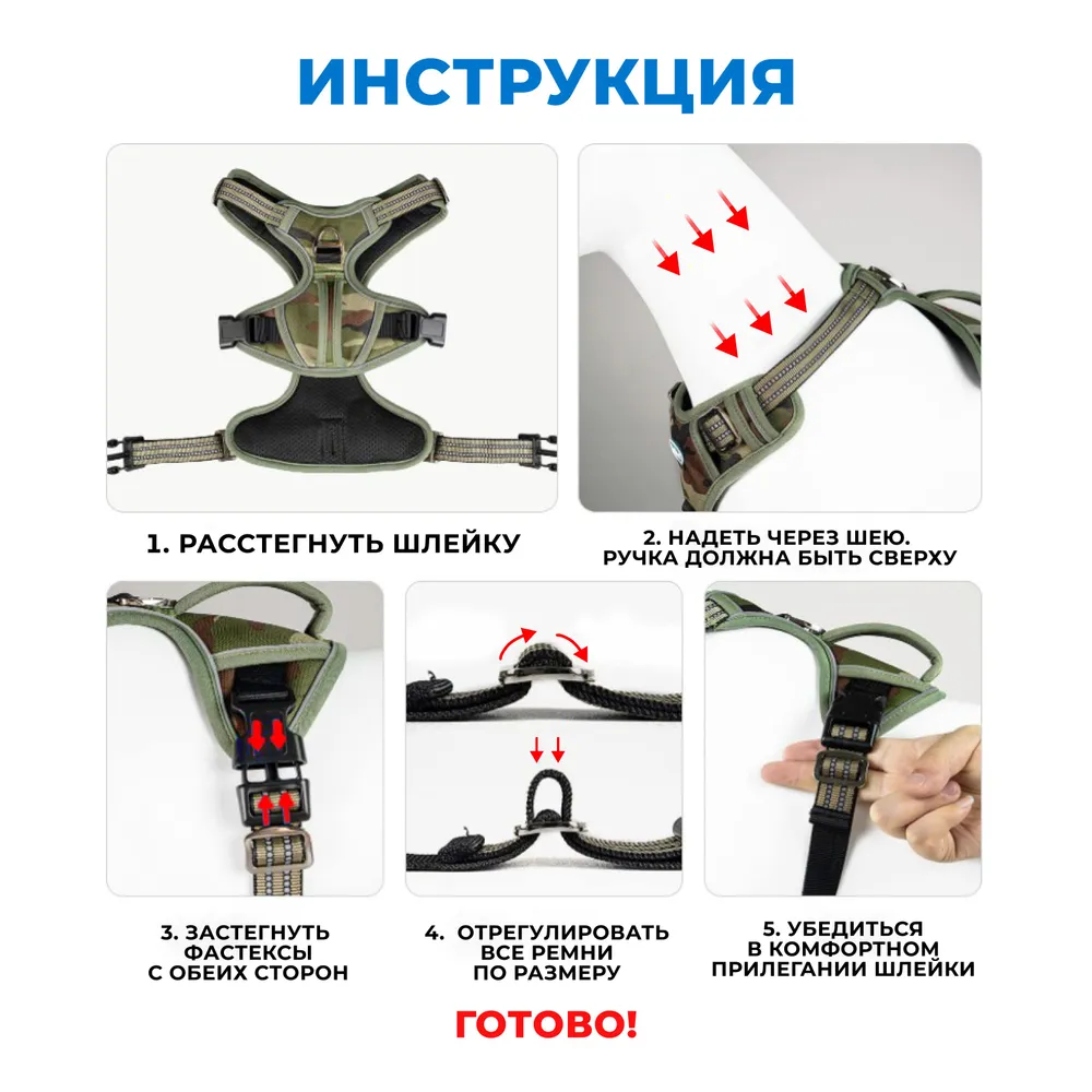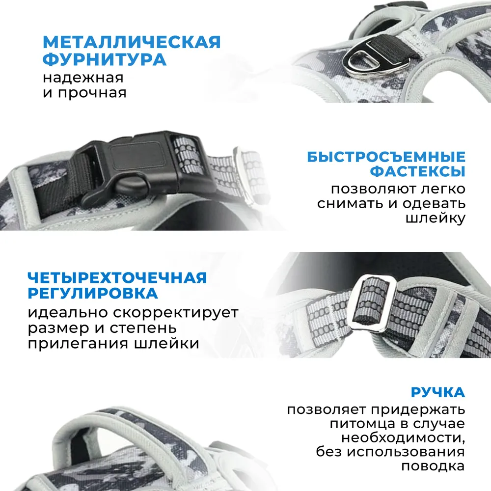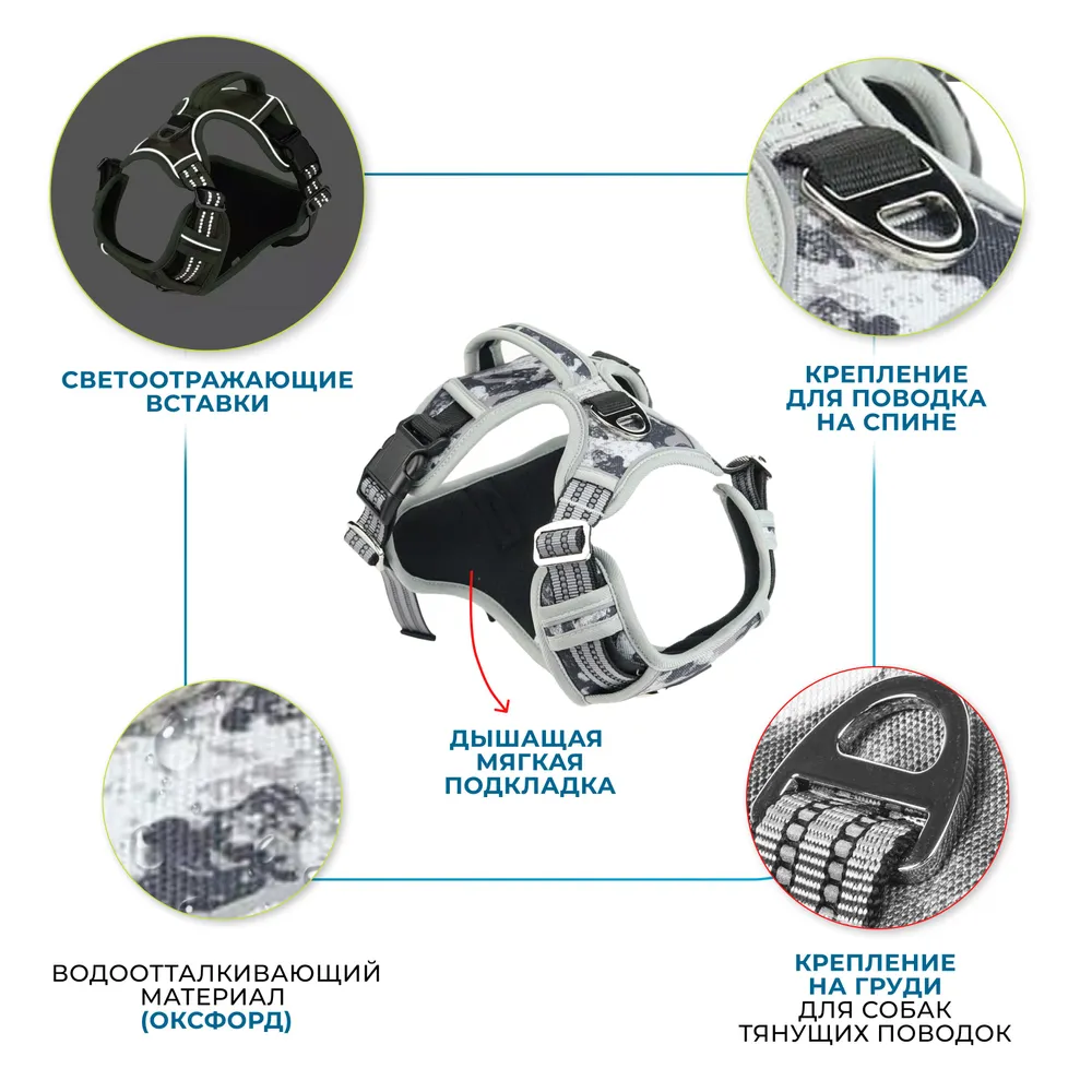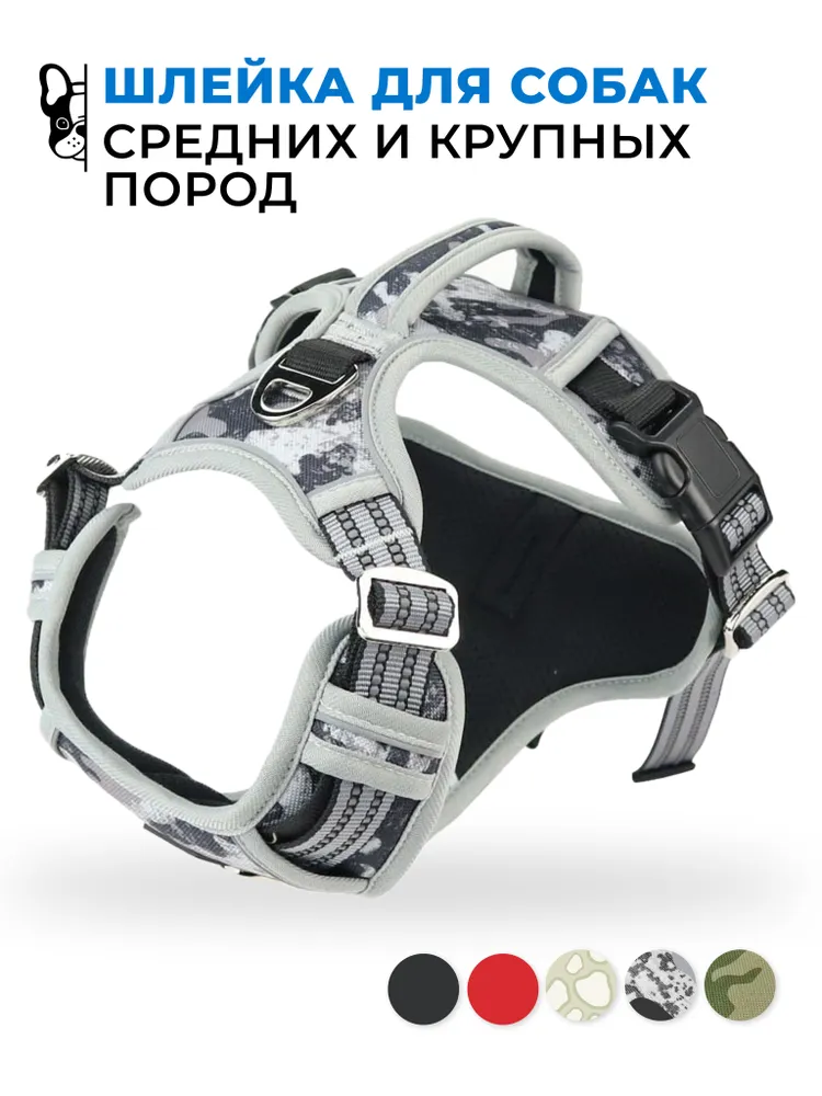 Шлейка тактическая для собак средних и крупных пород / серый камуфляж / размер XL