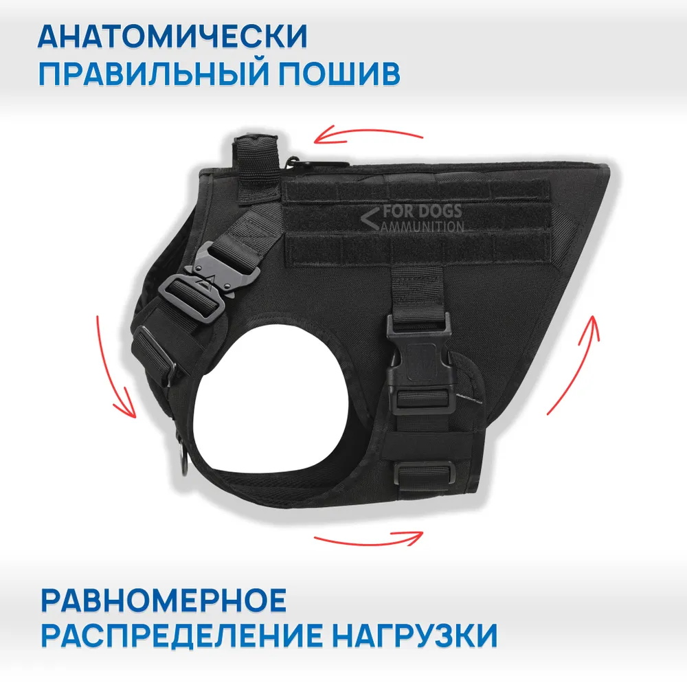Быстросъёмная металлическая пряжка . Надёжное решение , для самых энергичных собак .Представляем шлейку специального назначения для разных пород собак . Данная амуниция для собак создаёт комфорт при эксплуатации и обеспечивает максимальную безопасность во время занятий спортом и повседневных прогулок с собакой .О надежности тактических шлеек :Амуниция сделана с использованием передового оборудования и качественных материалов. Шлейки изготовлены из 1050D нейлоновой и водостойкой ткани , а так же 100% нейлоновая нить и тесьма. Важно в тактических шлейках используются металлические пряжки , позволяющие выдерживать высокие нагрузки в наиболее напряженных частях плечевого ремня. Крепкое металлическое v-образное кольцо сзади и металлическое d-кольцо спереди.О комфорте амуниции :Данная шлейка это более правильная альтернатива ошейнику .Именно такой пошив (треугольник) позволяет равномерно распределять нагрузку по всему телу собаки. Система сделана таким образом что при рывке собака себя не душит , а при ходьбе или беге , собака не чувствует дискомфорт .Так же конструктивной особенностью являются регулируемые длинные ремни , включая нижнюю часть. Регулировка строп позволяет приобрести амуницию на вырост, это отличная возможность ограничится одной шлейкой на случай если собака наберет еще 10-15 кг веса. Внутренняя часть шлейки имеет вентилируемую , мягкую стеганую подкладку.Для каких пород подходит амуниция ? Ответ прост - для всех!Если Ваш любимец вписывается в размеры шлеек , это несомненно станет лучшим решением .Спасибо за Ваш выбор !