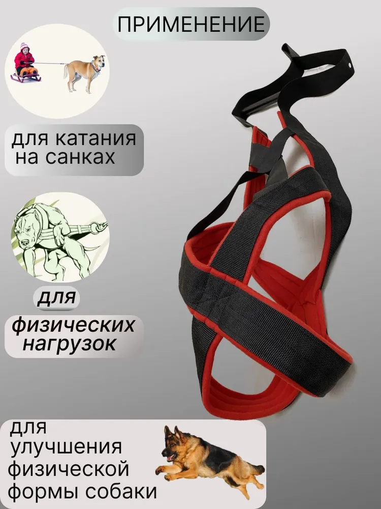 Шлейка для вейтпуллинга специально разработана для работы с большими грузами. Представляет собой длинную шлейку с распоркой, которая снимает нагрузку с поясницы собаки, переводя её на мышцы груди и плеч. Шлейка обеспечивает комфорт и безопасность собаки во время тренировок с использованием грузов, позволяет развивать силу и выносливость, а также улучшать физическую форму и нарастить мышечную массу. Правильно составленный режим тренировок укрепит связки и сердечно-сосудистую систему животного. Шлейки правильно распределяют нагрузку, что позволяет достигать наилучших спортивных результатов. Их можно использовать для катания детей на санках и ватрушках.▲ Шлейка изготовлена из нейлоновой стропы особой прочности (ширина 5 см), внутренняя часть выполнена из мягкого, удобного флиса, прошита армированной нитью, что значительно увеличивает прочность швов, снабжена расширителем (палкой, которая позволяет стропам не переплетаться и не путаться в задних лапах ), на конце петля из нейлона для крепления груза.▲ Начинать заниматься можно только после закрытия «зон роста» у собаки (не раньше 15-18 месяцев)) цепляя легкие веса, постепенно увеличивая нагрузку. Такой щадящий режим работы позволит избежать травм и деформации суставов растущей собаки.▲ Перед занятиями необходимо проконсультироваться с ветеринаром, а также кинологом или тренером по вейтпуллингу.▲ Мы предлагаем на продажу те размеры шлеек, что указаны в таблице в фотографиях. Перед заказом необходимо снять замеры, как показано на картинке и сравнить их с таблицей.Примерные породы;XS – Бультерьер карликовый, стаффордширский бультерьер, французский бульдог...S – Питбуль, АСТ (средние)...М – Питбуль, АСТ (крупные), Хаски..L – Овчарка, Доберман, Ротвейлер, Кане-корсо, Алабай (средний). Аргентинский/Канадский дог...XL – очень крупные породы, Дог, Алабай, Сенбернар и т.п.▲ При примерке обращайте внимание на следующий фактор, крестовина строп на спине должна быть в районе крупа собаки.
