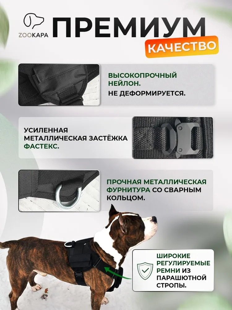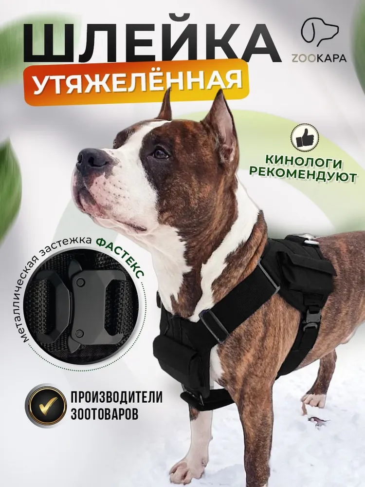 Чтобы правильно выбрать размер, необходимо максимально точно сделать замеры Вашей собаки! Следуйте инструкции на слайде № 3. Прочная широкая анатомическая шлейка без поводка и рулетки для больших бойцовских крупных, средних пород и собак поводырей из качественного прочного материала и металлической фурнитурой с усиленной фиксирующей застежкой пряжкой фастекс без светоотражающих элементов и сварным кольцом карабином на груди российского производства. Утяжеленная удобная текстильная амуниция с карманами на липучках для груза с дышащей подкладкой для четвероногих приятная на ощупь аккуратная, очень надежная из крепкого нейлона для безопасных прогулок не давит, не натирает кожу не передавливает не вытирает шерсть, не вредит и не стесняет движения вашему питомцу равномерно распределяет нагрузку. Тактическая прогулочная комфортная шлейка - универсальная и многофункциональная подходит на каждый день на круглый год и все сезоны для безопасной дрессировки повседневных прогулок интенсивных тренировок и развития мышечной массы, выносливости. Водоотталкивающая эргономическая мягкая шлея обеспечивает свободу для питомца т. к., является спортивной и профессиональной. Собачий крепкий амортизирующий аксессуар очень износостойкий - быстросъемный и быстросохнущий с влагозащитной функцией, в отличие от кожаной легко стирается быстро сохнет не деформируется и не промокает под дождем . Интерактивная регулируемая правильная шлейка подойдет для разных пород: для французского английского и американского бульдога, амбуля стаффордширского терьера стаффа лабрадора овчарки кане-корсо пуделя мопса спаниеля добермана сиба-ину бигль ротвейлера хаски швергшнауцера шелти борзой, ретривера самоедской риджбек колли корги ретривера маламута бультерьера