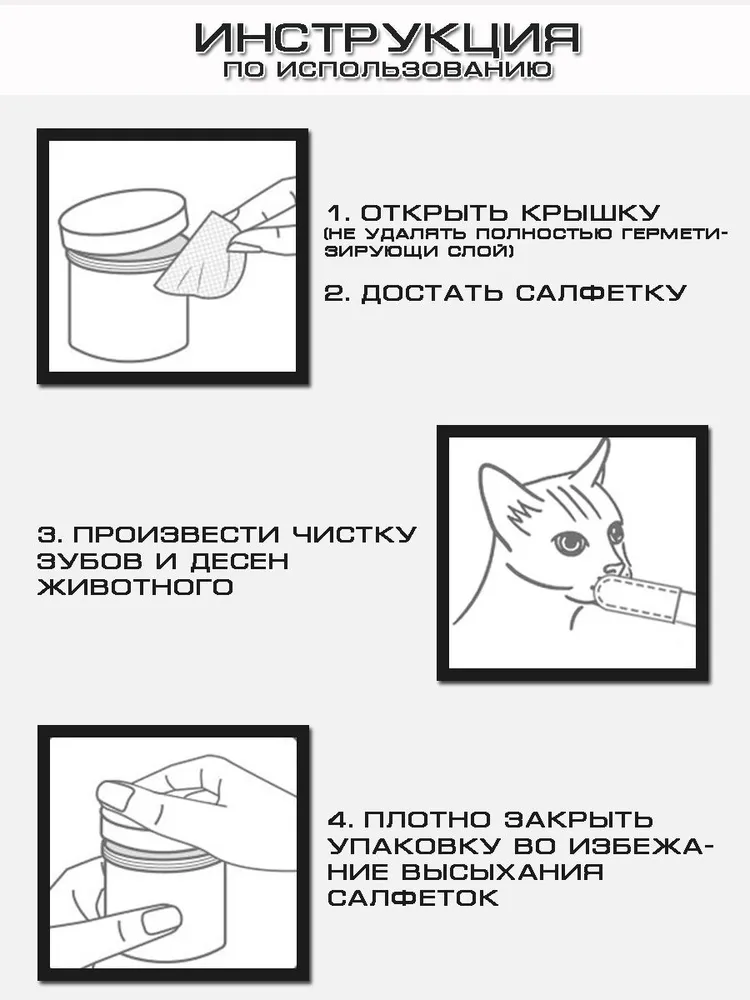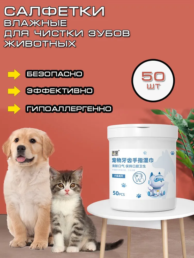Влажные антибактериальные салфетки — это удобный способ ухода за питомцем. Удобные салфетки для чистки зубов животных имеют форму напальчников и благодаря эргономичной форме салфетка не будет скручиваться и выпадать из рук во время процедуры. Это позволит организовать процесс груминга комфортным для вас и не вызовет отвращения и агрессии к процессу у вашего любимого питомца.. Влажные салфетки напальчники станут вашим незаменимым помощником в процессе гигиены полости рта вашего питомца,, с их помощью вы легко сможете предотвратить появление зубного камня у животных, они так же подходят для протирания глаз и слезных дорожек, отлично справятся с загрязнениями в ушах ваших любимцев. Все салфетки изготовлены из гипоаллергенных материалов и не содержат вредных химических добавок, что делает их безопасными для вашего питомца.Здоровый питомец – счастливый хозяин!