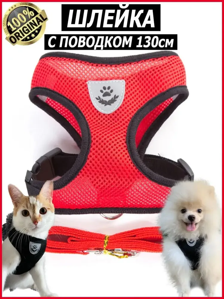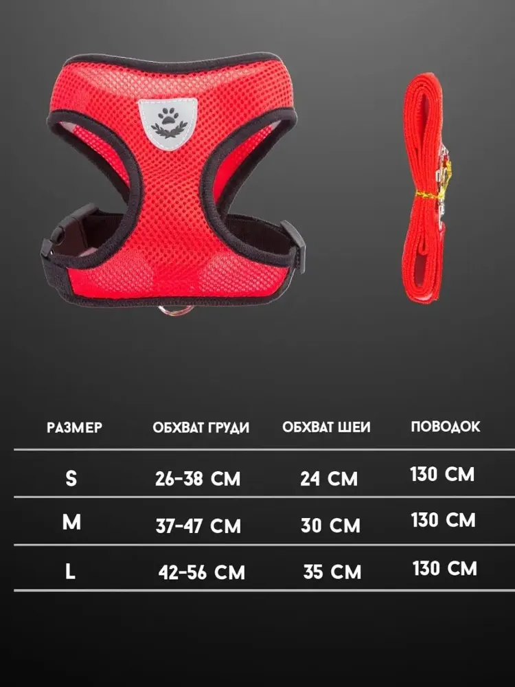 Шлейка с поводком для собак мелких, средних пород и кошек анатомическая