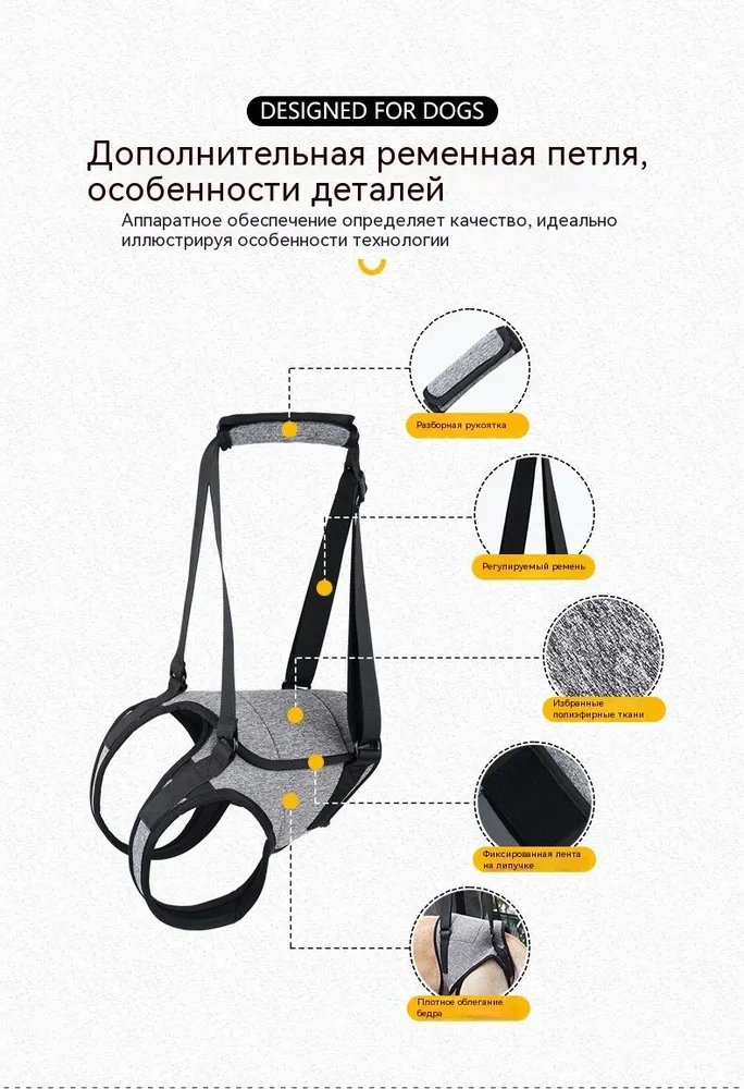 Для каких случаев подходит:🔹 После ортопедических операций🔹 Возрастные собаки с слабостью лап🔹 Питомцы с травмами позвоночника🔹 Собаки-инвалиды с amputations🔹 Восстановление после переломов