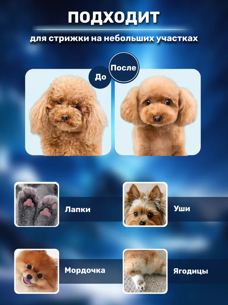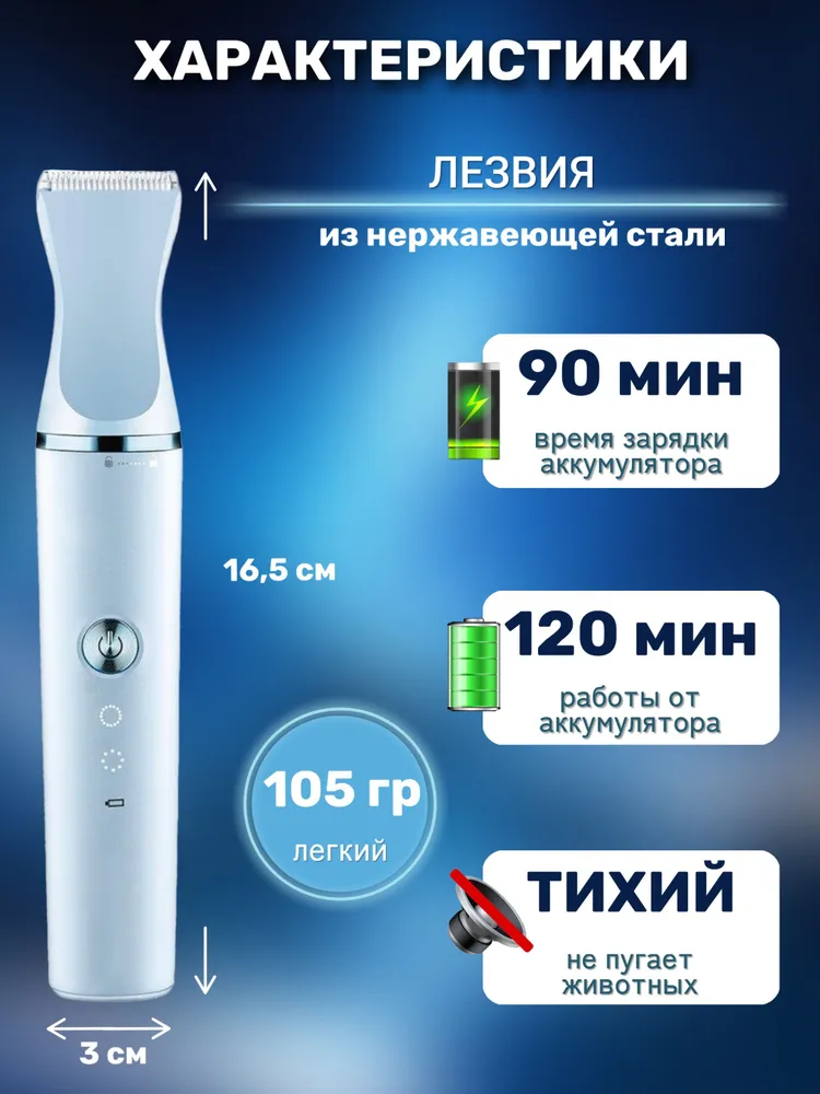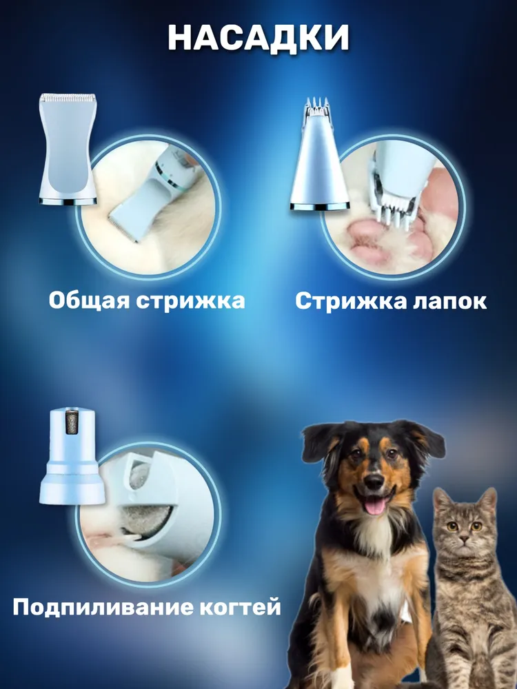 🐶 Триммер для собак и кошек — домашний груминг как в салоне!Подарите своему питомцу комфорт и ухоженный вид без лишнего стресса и трат. Этот универсальный набор для груминга — всё, что нужно для бережного ухода за шерстью и когтями вашего любимца дома.✂️ Всё включено — полный набор для ухода✅ Электрическая машинка для стрижки — работает от аккумулятора и сети✅ Насадки-гребни 3, 6, 9 и 12 мм — выбирайте нужную длину✅ Когтерез и пилка — безопасная и аккуратная обработка когтей✅ Ножницы и расчёска — для точной и бережной стрижки✅ Щётка для чистки лезвий и зарядный кабель — всё, что нужно в одном комплекте🔋 Удобно, безопасно, тихо📦 Беспроводной режим работы — не пугает питомца, легко использовать где угодно🔌 Зарядка от USB — подходит для любых адаптеров и пауэрбанков🔇 Низкий уровень шума и вибрации — подойдёт даже для чувствительных животных💡 Простой в использовании — подходит как новичкам, так и опытным владельцам