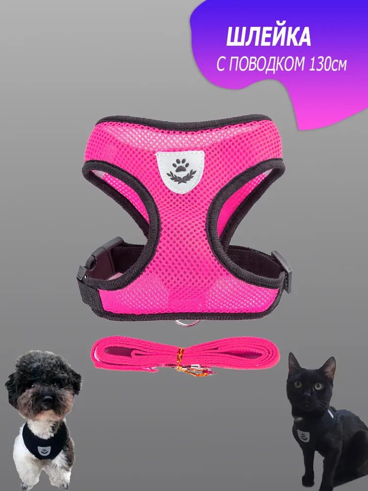 Шлейка с поводком для собак мелких, средних пород и кошек анатомическая
