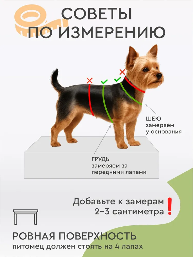 С чего начинается комфорт?С правильного размера! Поэтому очень важно делать замеры вашего любимца и пользоваться нашей размерной таблицей на фото в карточке товара. Подбирать размер по отзывам других покупателей — не лучшая идея, ведь каждый питомец имеет свои параметры и особенности.Не ленись — сделай замеры