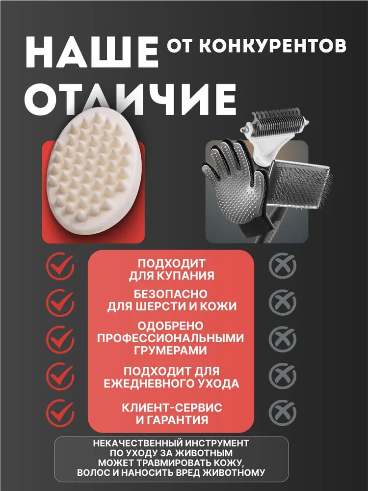Щетка силиконовая для собак и кошек - это уникальная щетка для щадящего и эффективного ухода за шерстью вашего питомца. Она нежно и безопасно удаляет загрязнения и скопившиеся волосы, обеспечивая комфортный процесс груминга коты. Этот инструмент вычесыватель идеально подходит для вычесывания и удаления колтунов у длинношерстных и короткошерстных кошек и собак. Он также подходит для ухода за шерстью грызунов, таких как хомяки или кролики, помогая им поддерживать гладкую и здоровую шерсть. Расчесывание шерсти вашего питомца - это важный аспект ухода, который помогает поддерживать ее в прекрасном состоянии. С помощью этой щетки вы сможете легко и эффективно вычесывать излишние волосы, предотвращая такие проблемы, как запутанность и путание шерсти. Силиконовые зубья расчестка мягко проникают в глубину короткой шерсти, помогая удалить даже самые мелкие загрязнения и не травмируют животное в отличии от дешеддер, пуходерка и фумигатор, фурминатор. Они массируют кожу животного, стимулируя кровообращение и помогая в борьбе с перхотью и обновлению новой шерсти. Она также может быть использована во время купания, мытья питомца как мочалка. С ее помощью вы сможете равномерно распределить шампунь по шерсти, сделать кожу чистой и здоровой, а шерсть блестящей и гладкой. Удобная форма расчески обеспечивает комфортное использование. Она идеально подходит для использования дома. Расческа для кошек и собак является незаменимым товары инструментом аксессуары для всех, кто заботится о здоровье и красоте кота своих домашних животных. Она поможет вам сэкономить время и деньги, предотвратить неприятные проблемы с шерстью и поддерживать шерсть вашего питомца в прекрасном состоянии. Теперь вы можете легко и эффективно вычесывать шерсть ваших котов, собака, хорьков с помощью этой удивительной массажной щеточка. Позвольте вашим домашним любимцам наслаждаться уходом и выглядеть настоящими звездами благодаря Расческе для кошек, и собак. Cat зоотовары скребок колтунорез кошачьей.