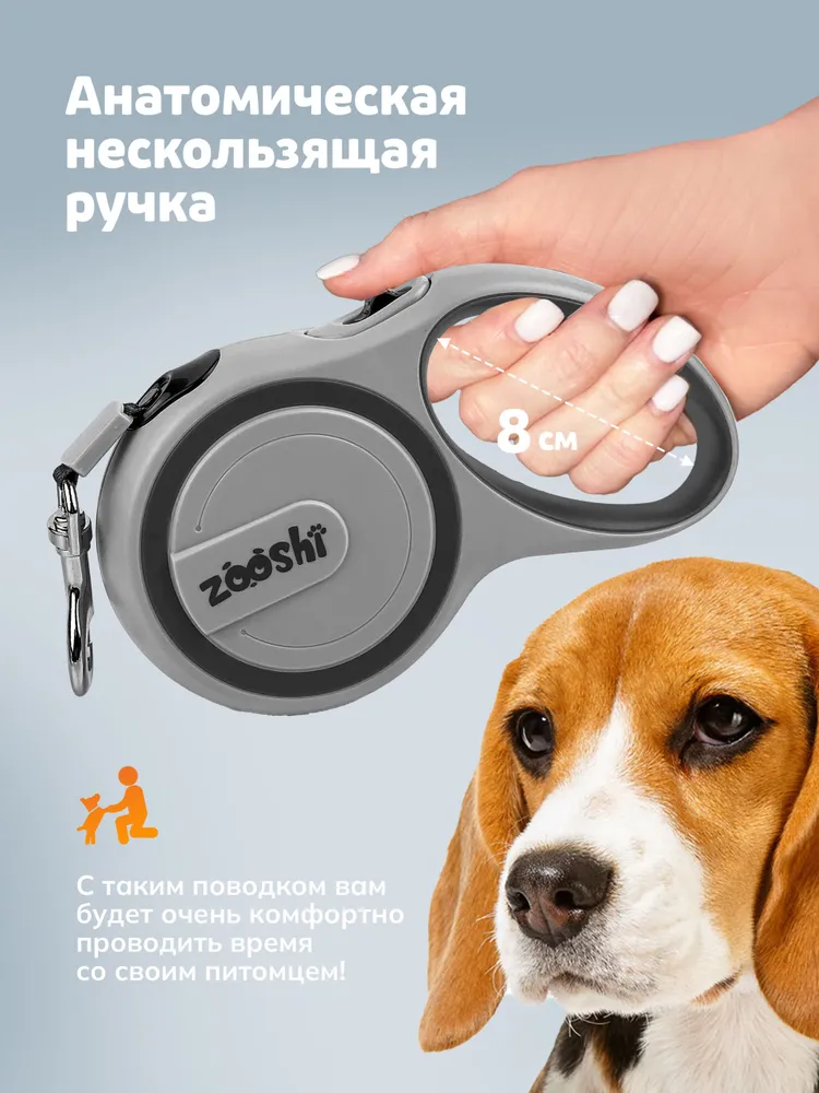 Современный поводок-рулетка для прогулок и дрессировки собак и кошек – лучшая находка для всех любителей мелких и крупных зоотоваров. Хорошее качество и удобство расположения в руке позволят сделать ваши прогулки с питомцем еще приятней. Рулетка-поводок подходит для пород собак и котов/кошек весом до 20 кг. Корпус амуниции надежно защищает механизм из нержавеющей стали 304, который выдерживает высокие нагрузки и рассчитан на долгий срок службы и не позволяет влаге проникать внутрь, предотвращая заржавение,а надежный карабин с вращающимся вертлюгом от запутывания отлично зацепится за ошейник.Все это – отличает данную модель от всех остальных, в том числе и Flexi New Classic. Длина поводка (ленты) составляет 5м, (метров), идеально подходит для маленьких и средних пород. Назначение амуниции для животного: для прогулки, дрессировки или же выставки. Анатомическая нескользящая ручка длиной 8 см и шириной 4 см позволит вам очень комфортно проводить время со своим питомцем! Эргономичная кнопка системы торможения, которая осуществляется одним касанием пальца, надежная система сматывания и фиксации длины-дополнительное удобство, помогающее контролировать поведение животного. Наша команда заботится о своих клиентах и потому мы осуществляем контроль на всех этапах производства: от закупки товара до упаковки. Гарантируем вам 100% восторг от данной модели и положительные эмоции! Желаем вам хороших покупок!