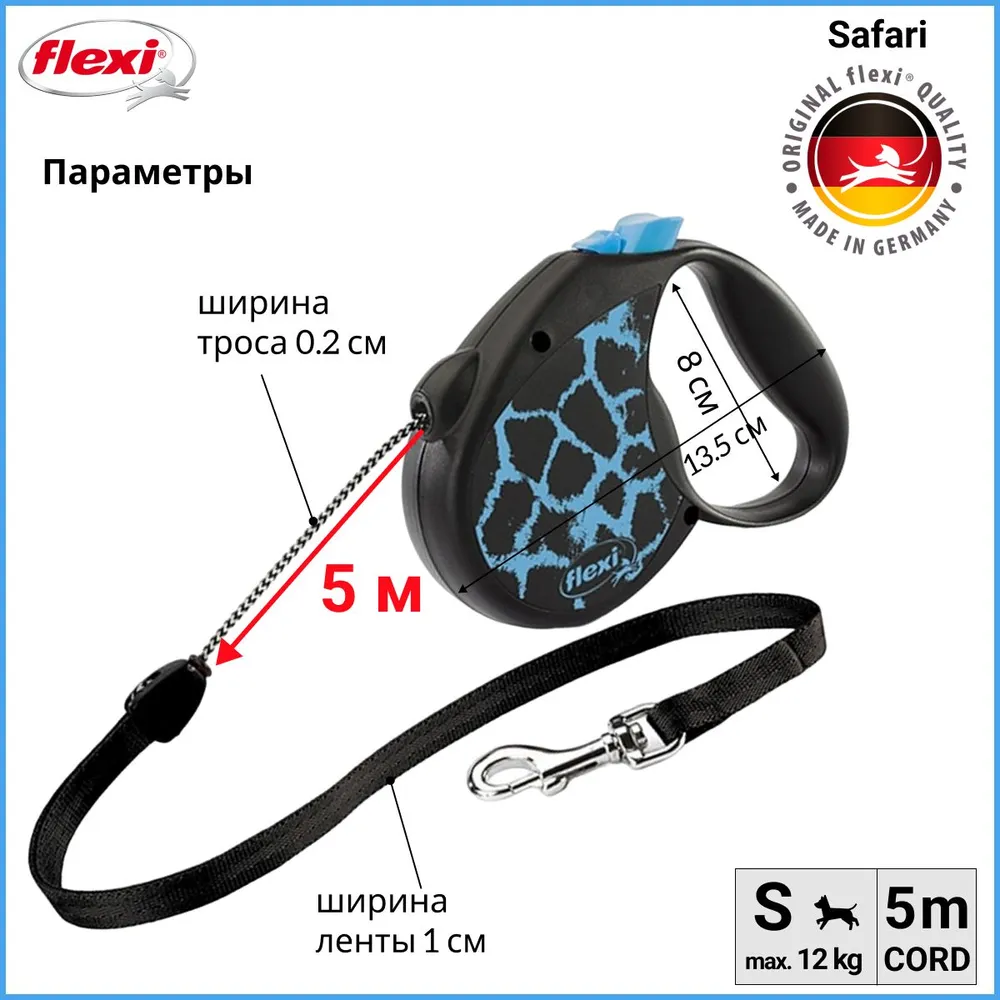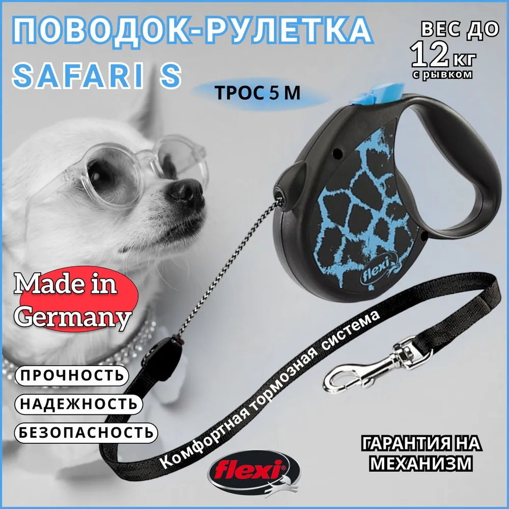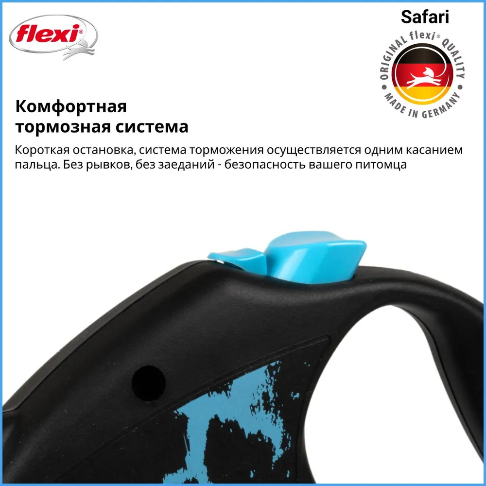 Перед началом использования рулетки необходимо внимательно ознакомиться с инструкцией! Рулетка для собак flexi - это уникальный и функциональный аксессуар для прогулок с животными. Серия safari обладает наилучшим соотношением цена/качество. Рулетки Safari имеют оригинальный и неповторимый дизайн, что принесет вам еще большую радость от моментов, проведенных с любимцем. Этот поводок-рулетка обладает рядом преимуществ, которые делают его идеальным выбором для активных и энергичных питомцев. Рулетки flexi обладают рядом особенностей и преимуществ. Рулетка имеет эргономичную ручку. Благодаря комфортной и удобной ручке, вы сможете прогуливаться с собакой без усталости и боли в руке.Надежная система торможения. Рулетка оснащена системой торможения, которая позволяет контролировать скорость и движение собаки, обеспечивая безопасность для обеих сторон. Прочный металлический карабин надежно крепиться к ошейнику или шлейке домашнего животного.Уникальная запатентованная система сматывания и фиксации длины рулетки позволяет быстро и легко настроить нужную длину повода. Большая кнопка на корпусе рулетки для функции временной остановки без блокировки. Маленькая кнопка с функцией блокировки разматывания троса. Для того,чтобы зафиксировать поводок необходимо большим пальцем зажать большую кнопку одновременно сдвинуть маленькую вперед.Поводок идеально подойдет для путешествий, прогулок и активного отдыха на природе. Гарантия на работоспособность механизма 2 года. Гарантия не распространяется на механические повреждения корпуса и поводка. Вскрытие поводка отменяет гарантию на поводок. СЛОТА ДЛЯ МУЛЬТИБОКСА - НЕТ!