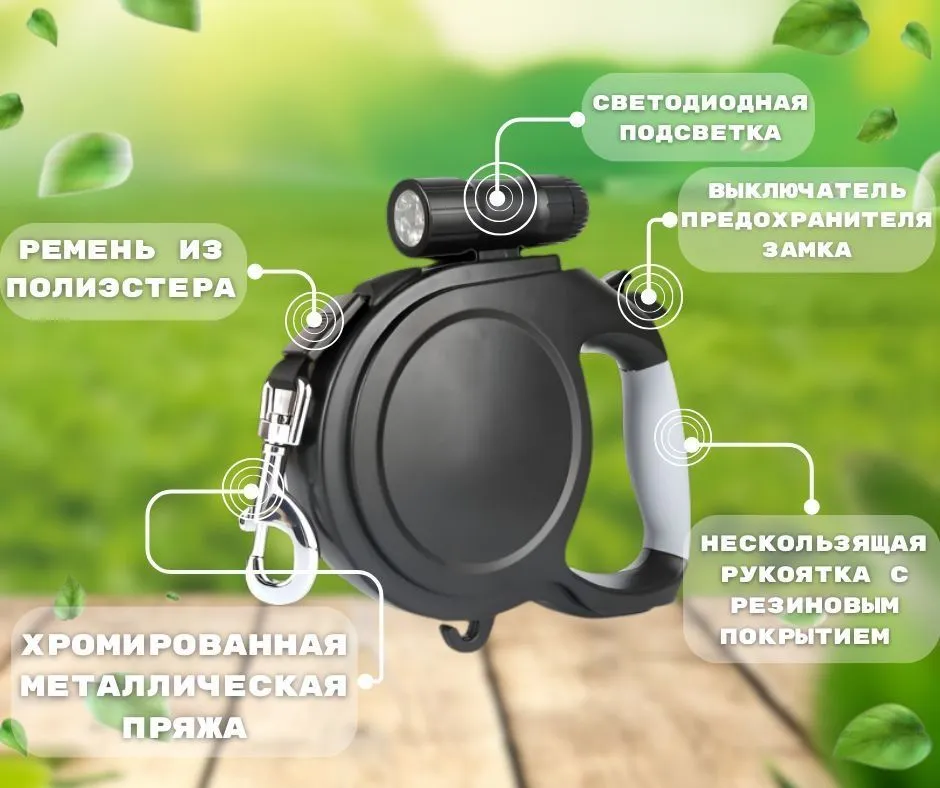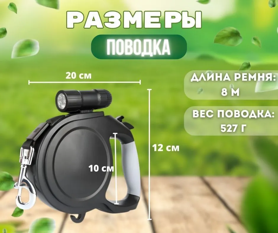 Поводок до 50 кг с длиной 8 метров и съемным LED-фонариком - это идеальный выбор для активных путешественников и любителей прогулок со своими питомцами. Рулетка выполнена из прочного пластика, который не боится влаги и повреждений, и может выдерживать вес до 50 кг, подходя для средних и больших пород собак. Благодаря кнопке блокировки, вы можете легко фиксировать нужную длину поводка. Съемный LED-фонарик обеспечивает безопасность и комфорт в темное время суток. Поводок также легко повесить на сумку или прикрепить контейнер для пакетов. Безопасный и удобный, этот поводок станет незаменимым аксессуаром для ваших прогулок с питомцем.Поводок-рулетка для собак - это уникальный аксессуар, который обеспечивает комфорт и безопасность во время прогулок. Он идеально подходит для собак мелких пород, но также способен выдерживать вес до 50 кг, что делает его универсальным решением для большинства пород. Рулетка для собак до 50 кг оснащена прочной лентой длиной 8 метров, что позволяет вашему питомцу свободно исследовать окружающую среду, сохраняя при этом контроль над ситуацией. Поводок-рулетка до 50 кг также включает в себя съемный LED-фонарик, который обеспечивает видимость в темное время суток. Паводок для собак-рулетка - это не только удобный аксессуар, но и важный элемент безопасности, который поможет вам и вашему питомцу наслаждаться прогулками в любое время суток.