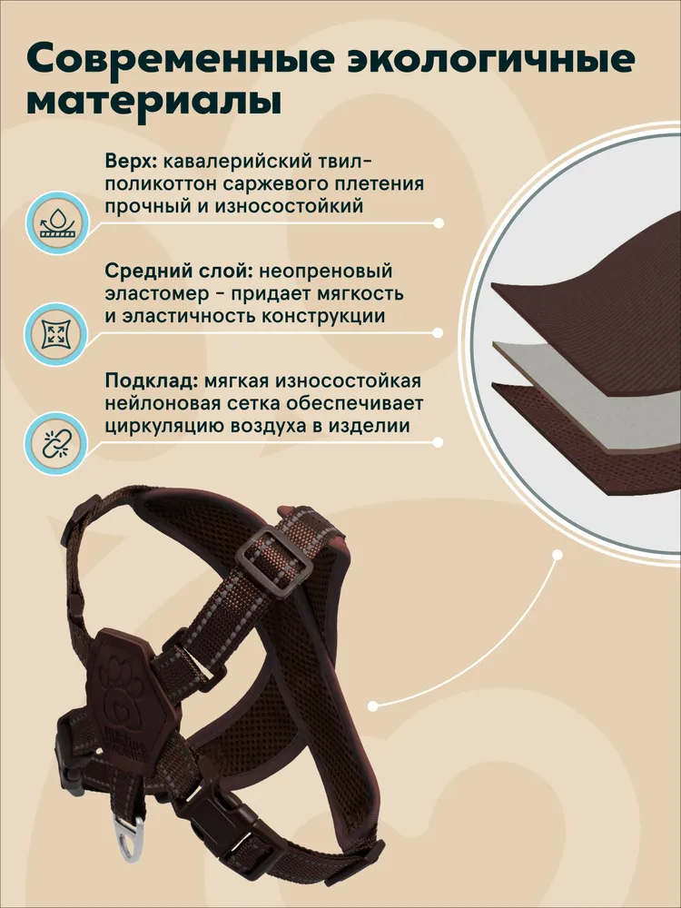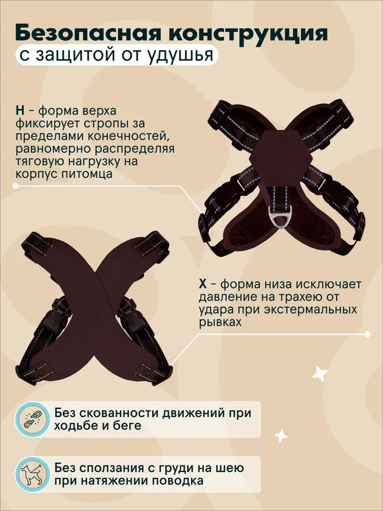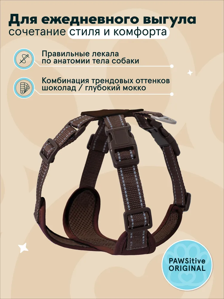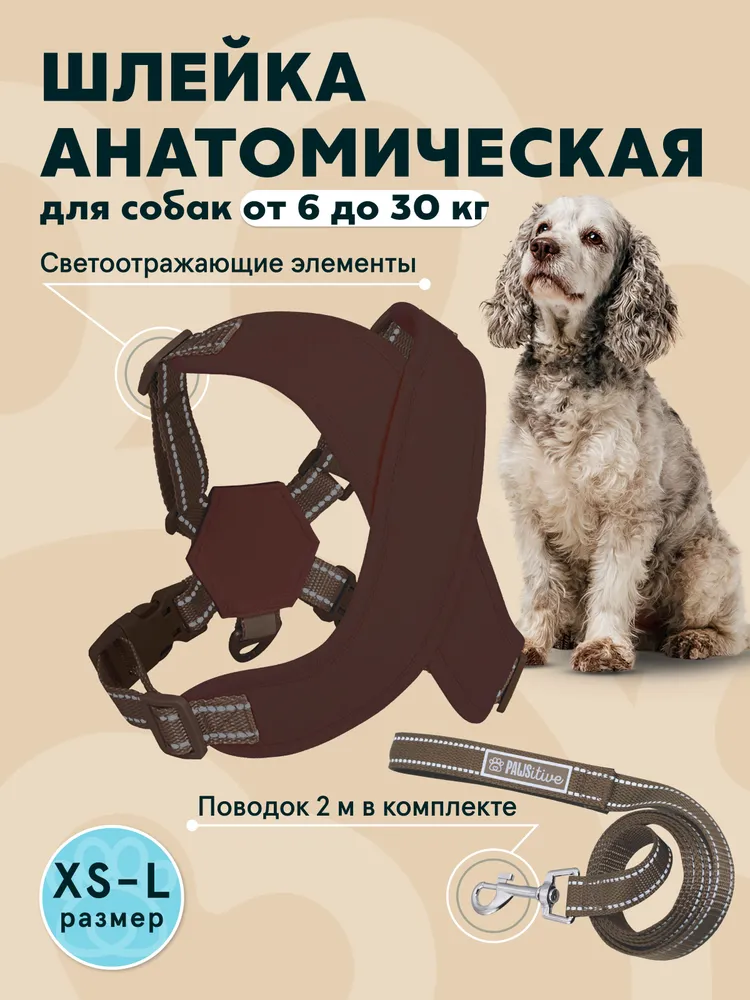 Шлейка PAWSitive / Для собак мелких и средних пород размер L / Анатомическая c поводком 2 м