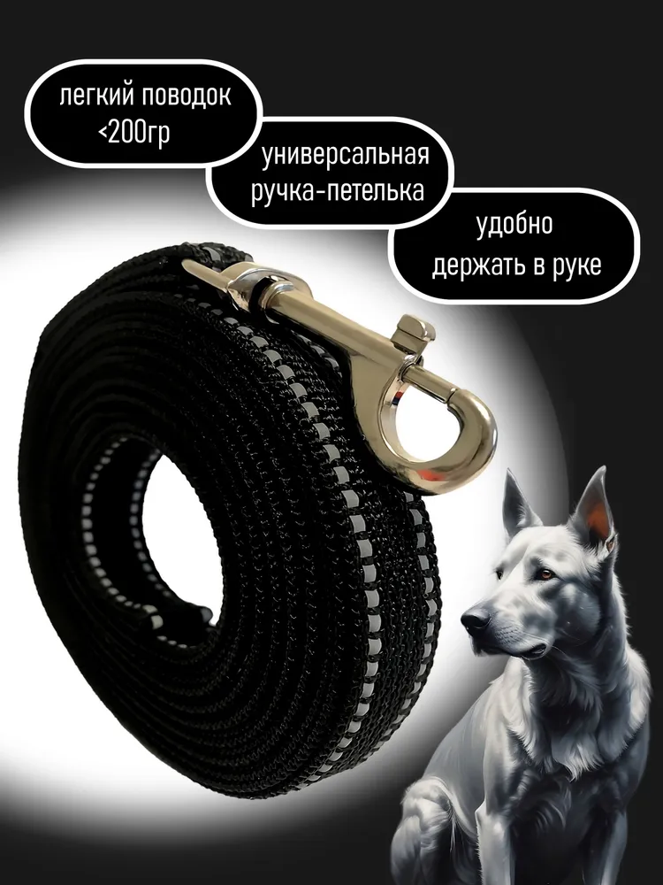 Для самых любимых хвостиков!Поводок Petsare подойдет собакам средних и мелких поводок, щенкам и кошкам. Продукт оснащен надежной фурнитурой, выдерживающей питомцев весом до 25кг.Комфорт и надежность.В поводке используется металлический карабин с поворотным механизмом и защелкой автомат. Ротация карабина вокруг своей оси не позволяет поводку перекручиваться и делает прогулку максимально комфортной.Идеален для ежедневных прогулок.Поводок длиной 5 метра подойдет и для размеренного променада в парке на выходных, и для каждодневного утрене-вечернего выгула.Собери яркий комплект.Стильные дизайны поводков Petsare всегда можно дополнить ошейником или шейком в соответствующей расцветке. Собери комплект под любое настроение.Удобен и для взрослых, и для детей.Модель изготовлена из стропы шириной 20мм и оснащена ручкой петелькой. Не слишком широкая и при этом надежная лента поводка - все для вашего комфорта и радостной прогулки питомца.Долговечность и опрятность.Даже если за окном непогода или вашего питомца манит лужа - поводок Petsare выдержит любое испытание. Изделие выполнено из прочной стропы, которая не выгорает и легко поддается чистке, а при необходимости и ручной стирке.