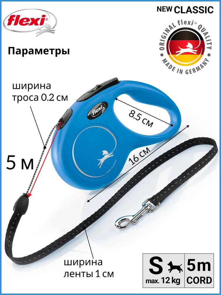 Поводок-рулетка Flexi New Classic cord (трос) S 5 м для собаки до 12 кг