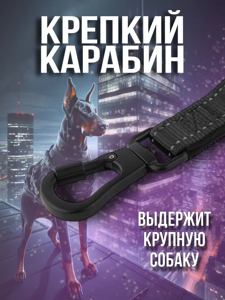 Великолепный поводок водилка для собак, представленный в нашей коллекции, является неотъемлемой частью амуниции и дрессировки. Этот поводок для собаки, специально разработанный для крупных и средних пород, воплощает в себе высочайший стандарт качества и функциональности. Обеспечивайте безопасность и контроль во время прогулок с вашим верным спутником, доверяя надежность нашей продукции.Особенности:-Трехслойный нейлон сложного плетения обеспечивает долговечность и стойкость к рывкам и нагрузкам.-Интегрированная светоотражающая нить позволяет управлять движением даже в условиях низкой видимости, обеспечивая безопасные прогулки в темное время суток.-Усиленный карабин из нержавеющей стали поворачивается на 360 градусов, обеспечивая надежное крепление к ошейнику.-Эргономичная и мягкая на ощупь ручка добавляет комфорта и радости к каждой прогулке, делая общение с питомцем еще более приятным.-Многофункциональный короткий поводок подходит для перевозок в машине, поездок на выставки или использования в общественном транспорте, а так же для визита к ветеринару.Этот поводок идеально подходит для крупных собак, включая такие породы, как лабрадоры, немецкие овчарки и хаски, и др. Он сочетает в себе функциональность, стиль и безопасность, что делает его незаменимым аксессуаром для вашего любимца.Поднимите уровень вашей прогулки на новый уровень с нашим надежным и стильным поводком для собак. Дарите своему питомцу и себе удовольствие от безопасных и комфортных прогулок в любое время и в любых условиях.
