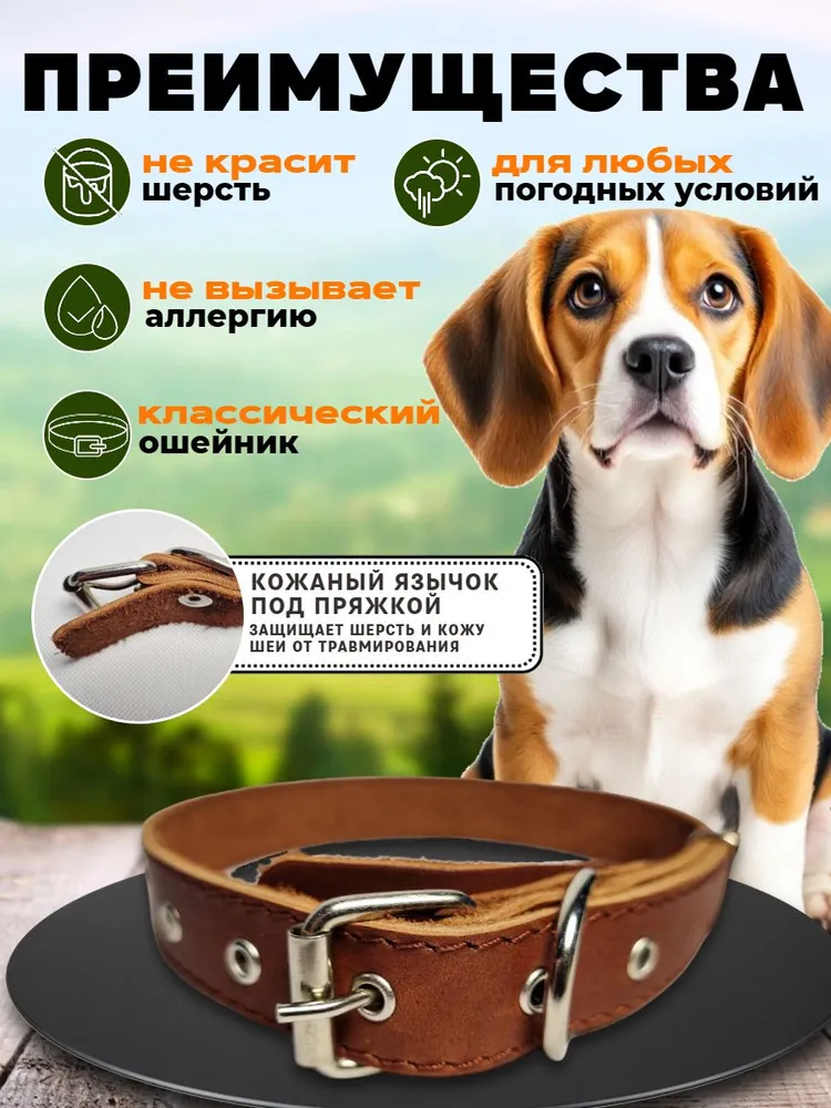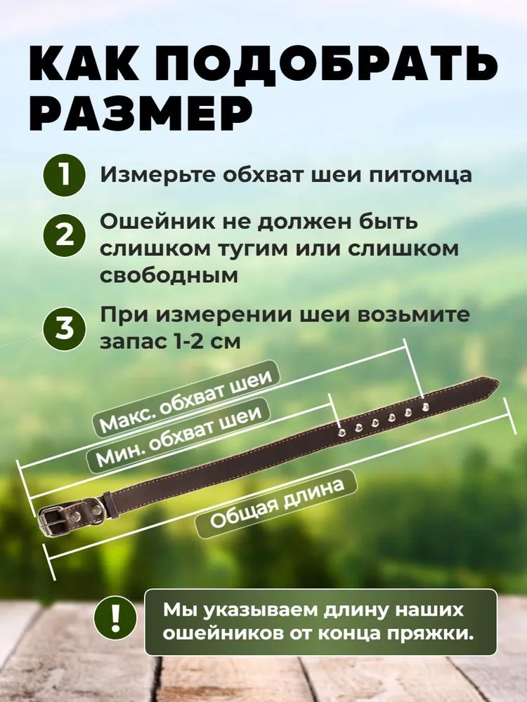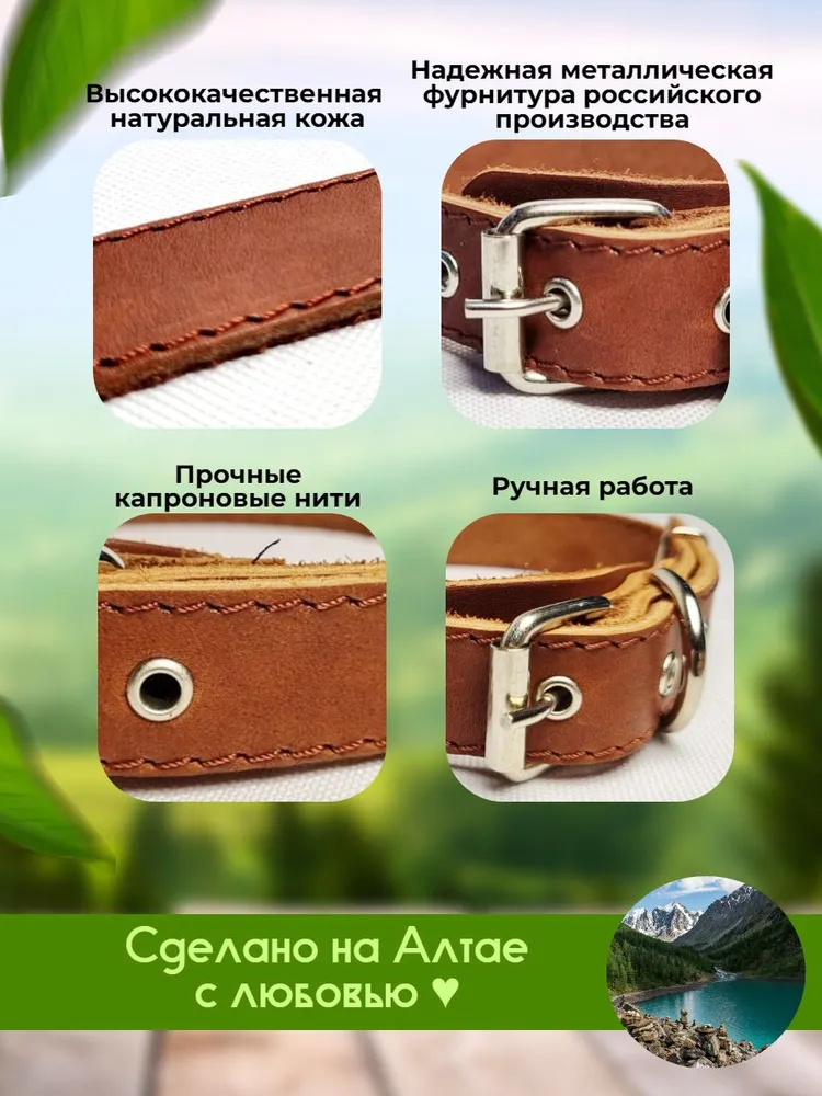 Классические стильные повседневные ошейники - это необходимая часть амуниции для спокойных и активных прогулок, дрессировки, участия в выставках, воспитания и коррекции поведения собак всех пород и размеров (мелких, средних и крупных), а так же щенков. Ошейники для собак выполнены из качественной гипоаллергенной натуральной кожи или прочного брезента, не красят шерсть. Они двойные или одинарные, в зависимости от модели. Мы используем надежную фурнитуру из нержавеющей стали, прочные капроновые нити и изготавливаем продукцию вручную. На данных моделях установлена классическая роликовая металлическая пряжка, а не фастекс. Анатомия ошейника продумана до мелочей и выполнена по собственному дизайну, есть язычок под пряжкой, который защищает шею питомца от дискомфорта и натирания, можно прикрепить адресник. Наш ошейник отлично дополнит набор имеющейся у вас амуниции - электронный, светящийся, строгий и с шипами, антилай, от блох и клещей, биотановый, с пультом, удавку, тактический. Многофункциональный ошейник подходит для любых погодных условий, обеспечит комфорт и безопасность в любой ситуации. Для увеличения срока службы, рекомендуется хорошо просушивать всю амуницию для собак после длительного использования в дождливую сырую погоду. Мы изготавливаем нашу продукцию на Алтае с большой любовью к домашним животным! Наши поводки и ошейники уже оценили владельцы немецких овчарок, ротвейлеров, лабрадоров, хаски, корги, биглей, шпицев, бульдогов, чихуахуа и других пород собак, а так же крупных котов и кошек. Надеемся, вы тоже останетесь довольны и ваш питомец скажет вам спасибо!