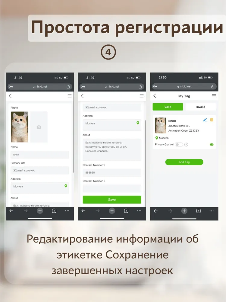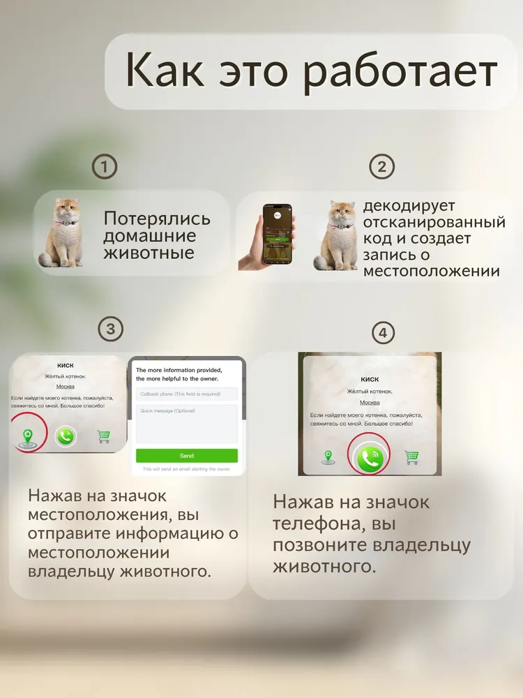 Если кто-то отсканирует QR-код, незнакомец сможет увидеть оставленный вами номер телефона или отправить адрес на вашу электронную почту, чтобы вы могли быстро найти своего питомца.Шаг 1-21.Cканируйте QR-Kод,указанHый на пр