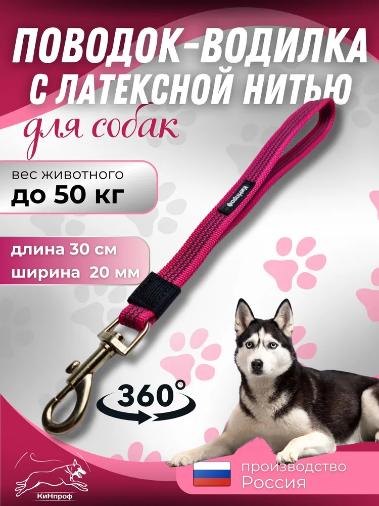 Поводок для собак с латексной нитью. Легкий прорезиненный поводок, удобно лежит в руке. Прекрасно подойдет для прогулок и дрессировки средних и крупных пород собак. Благодаря уникальному свойству материала, не скользит в руке, даже в мокрую погоду. При повышенных нагрузках не обжигает руки. Поводок снабжен надежным карабином, который вращается вокруг своей оси, исключая его закручивание. Удобная ручка – петля, для контроля над собакой.