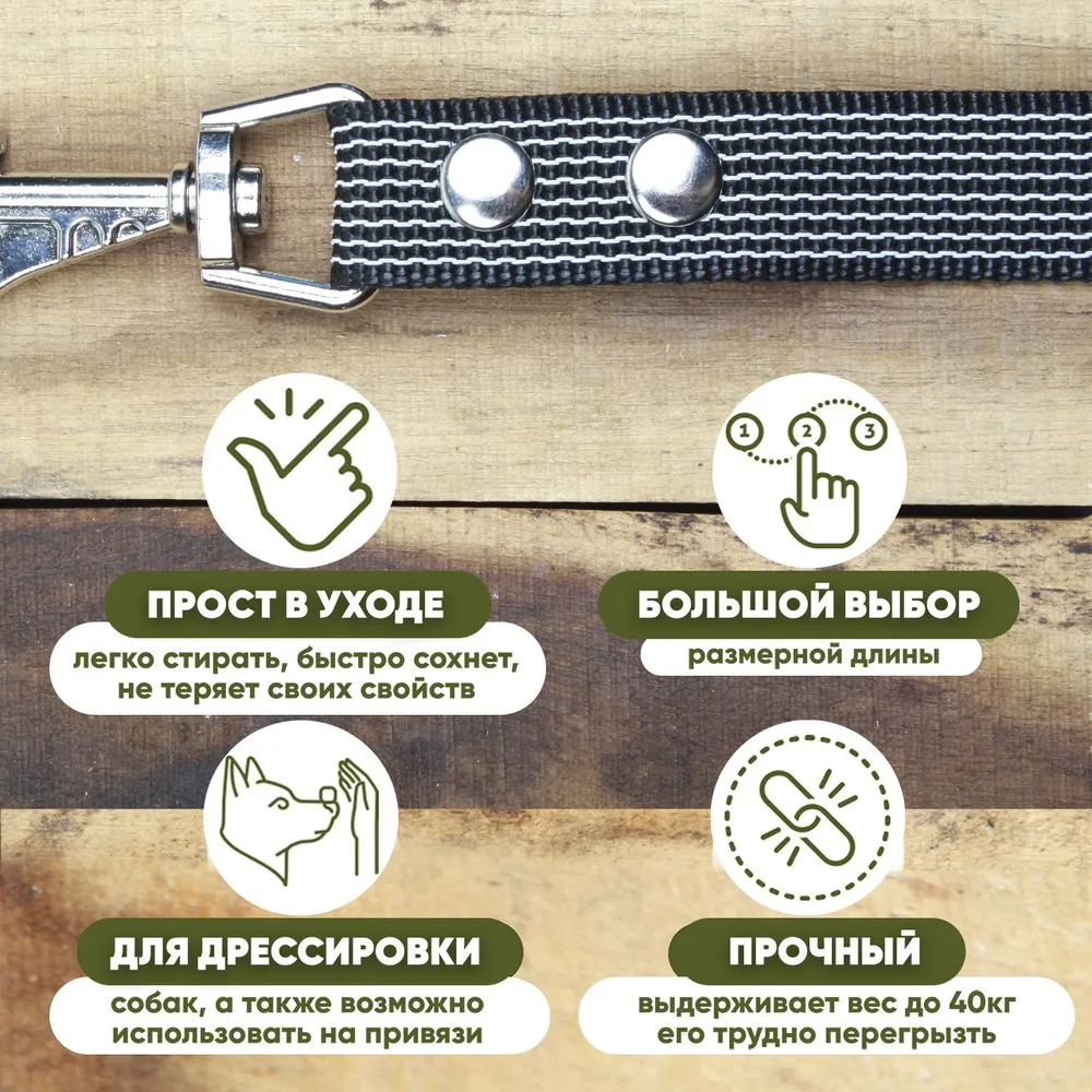 Поводок нейлоновый прорезиненный для собак (черный) - это идеальный аксессуар для прогулок и дрессировки вашего питомца. Его длина составляет 2 метра, а ширина - 25 мм. Этот поводок представляет собой надежную, прочную и долговечную конструкцию, которая обеспечит безопасность вашей собаки и комфорт вам во время прогулок.Изготовленный из нейлона, он обладает высокой устойчивостью к натяжению и износу, а также не впитывает влагу, что позволяет использовать его даже во время дождя или влажных условий.Прорезиненное покрытие делает поводок более удобным в использовании и обеспечивает надежный захват, предотвращая скольжение в руке. Поводок оснащен крепким карабином, который легко крепится к ошейнику собаки. Благодаря своей длине в 2 метра, этот поводок позволяет дать вашей собаке свободу движений во время прогулок, при этом вы всегда сможете ее контролировать. Черный цвет с белыми латексными нитями добавляет стильности и элегантности.Подходит для средних и крупных пород весом до 50кг.Инструкция по применению:1. При загрязнении изделия рекомендуется стирать в ручном режиме, при температуре не более 40° без использования отбеливающих средств.2. Сушить лучше на открытом воздухе, без попадания прямых солнечных лучей.3. Хранить в сложенном состоянии в сухих помещениях.4. Запрещается давать питомцу играть с поводком или грызть его.5. Белые латексные нити в случае загрязнения легко отмываются средствами для мойки посуды или их аналогами.