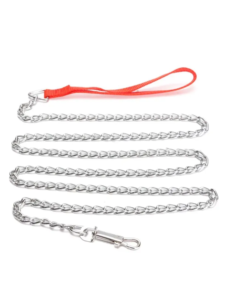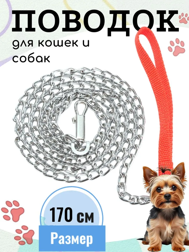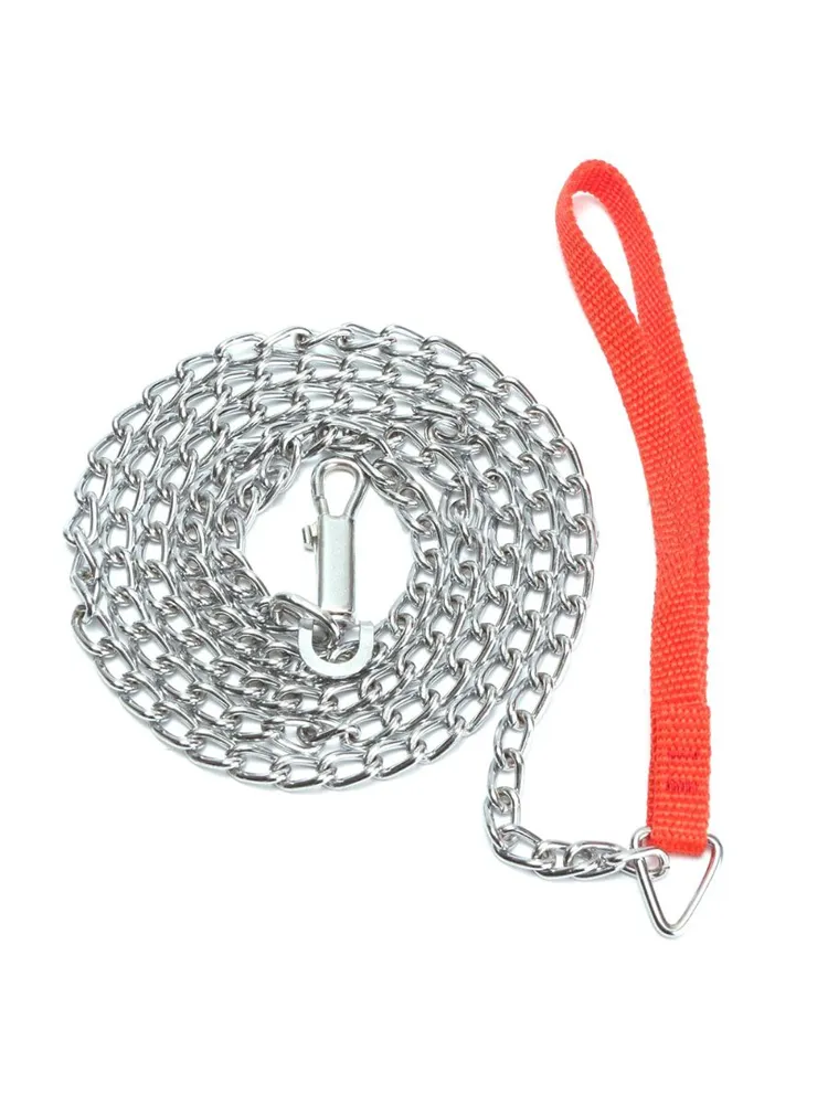 Поводок должен быть прочным и надежным. Металлический поводок полностью соответствует этим требованиям, плюс ко всему это красивый и износостойкий аксессуар. Поводок состоит из хромированной цепочки и мягкой нейлоновой ручки. Ручка прошита армированной нитью, удобно располагается в ладони и не натирает при натяжении. Поводок оснащен стальным карабином. Он идеально подходит для прогулок в парке, на улице или в лесу. Поводок легко очищается от грязи и пыли, что делает его удобным в использовании. Ручка из красного нейлона. Цинковое покрытие для долговечного использования. Поворотный зажим предотвращает скручивание .Материал: металл + нейлон. Цвет ручки: красный. Размер зажима: прибл. 6x1,4 см .Общая длина: прибл. 1,7м.Прочный и гибкий поводок.