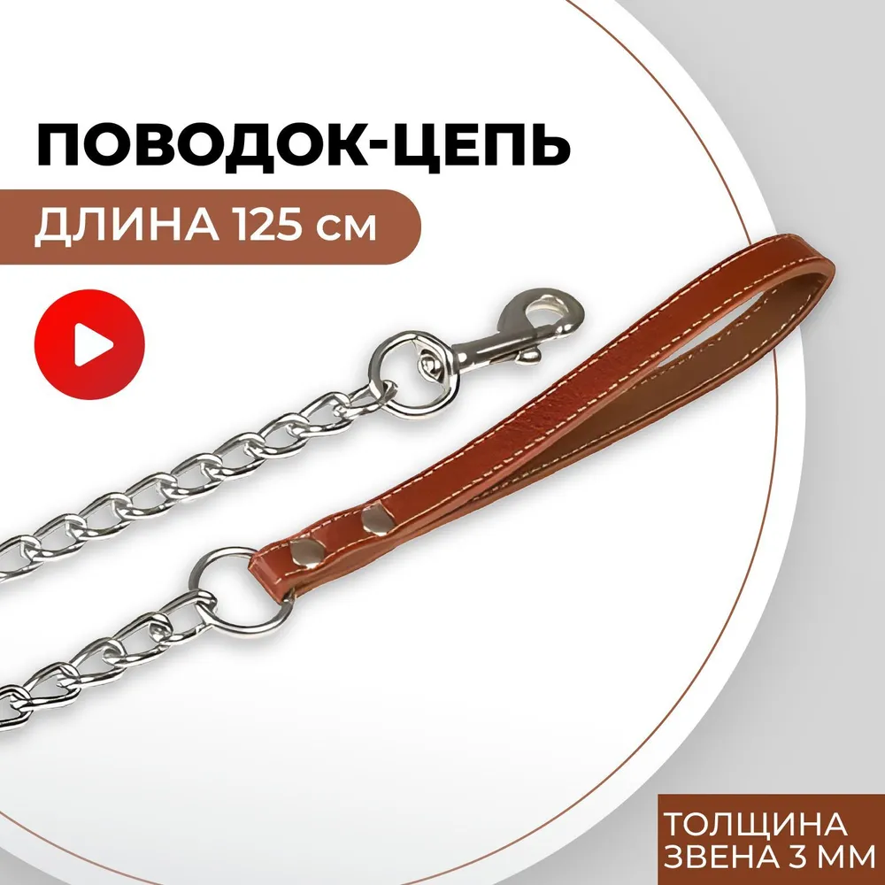 Карабин-вертлюг изготовлен из высококачественной стали, свободно вращается на 360 градусов, что не дает цепи перекручиваться во время движения.В нашей линейке представлены поводки-цепи разной толщины - с калибром звеньев 2, 3 и 4 мм. Поэтому изделия подойдут для животных любых размеров.Приобретайте кожаные ошейники в комплекте с поводком