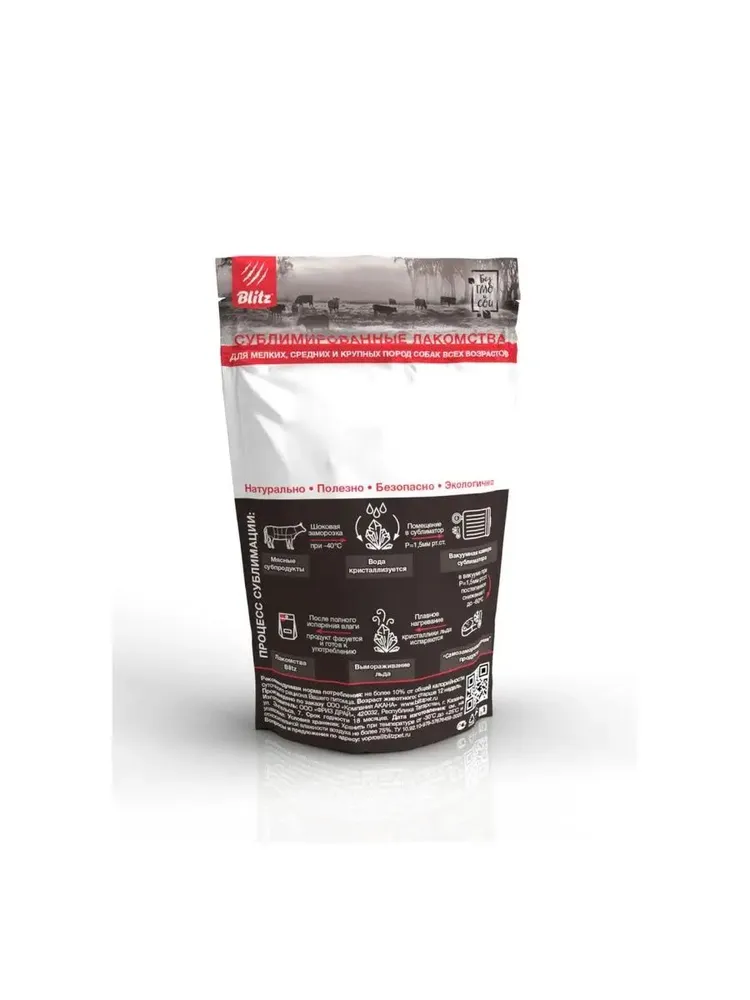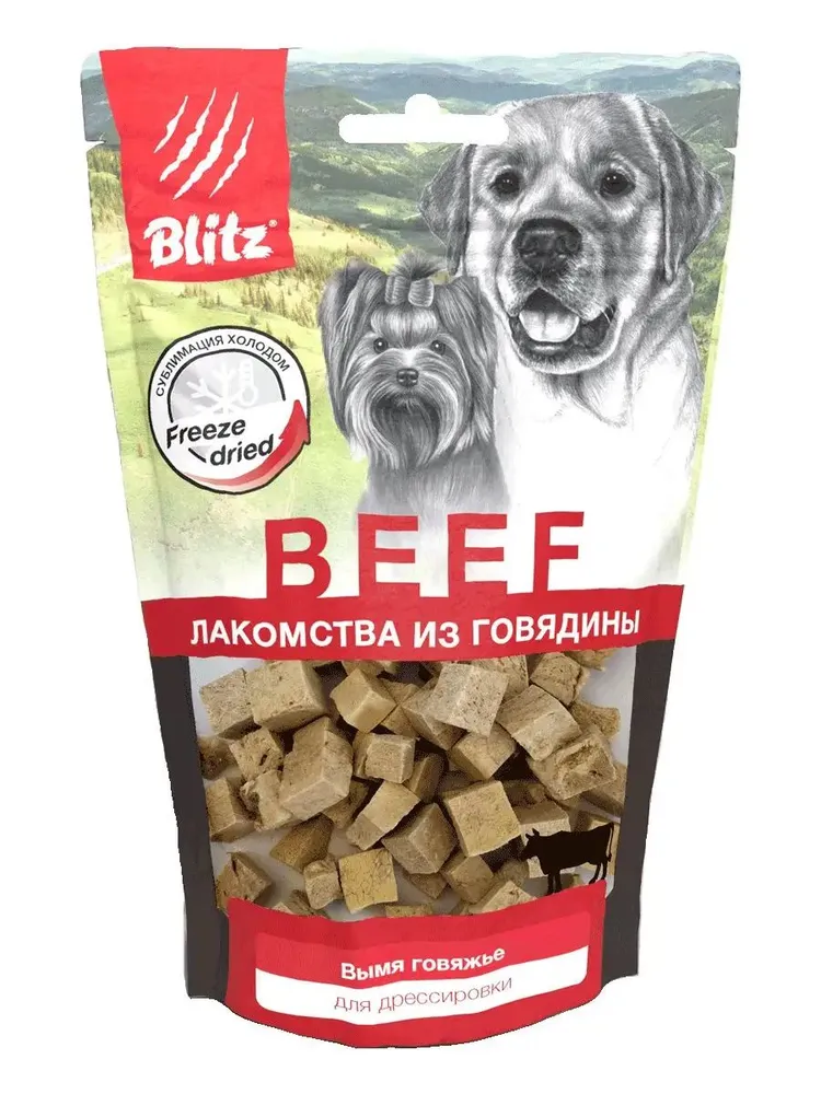 Сублимированное лакомство говяжье вымя - мягкое, нежное, изысканное, с тонким сливочным ароматом… Зубки почесать об него вряд ли удастся, но для дрессировки, игры, поощрения, первого знакомства или дружеской посиделки с любимцем - это то, что надо.